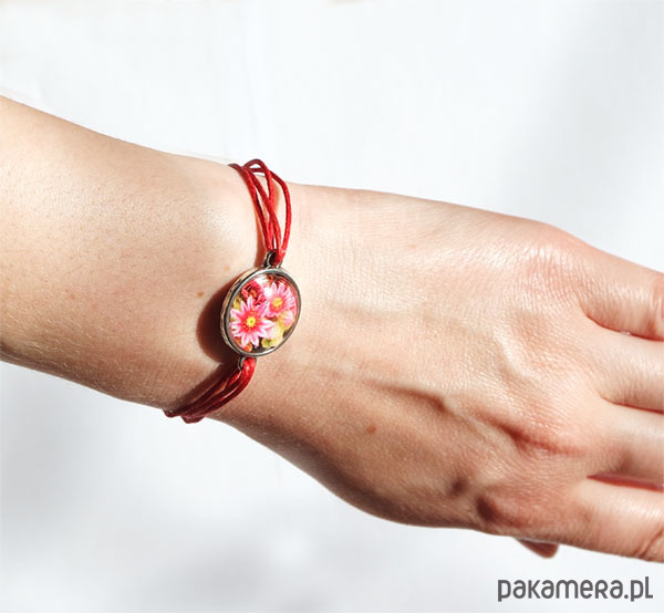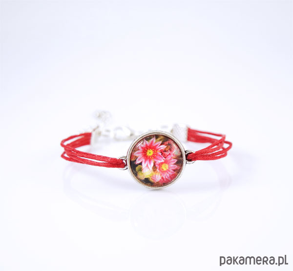 Bransoletka - Kwiaty - czerwona, sznureczki