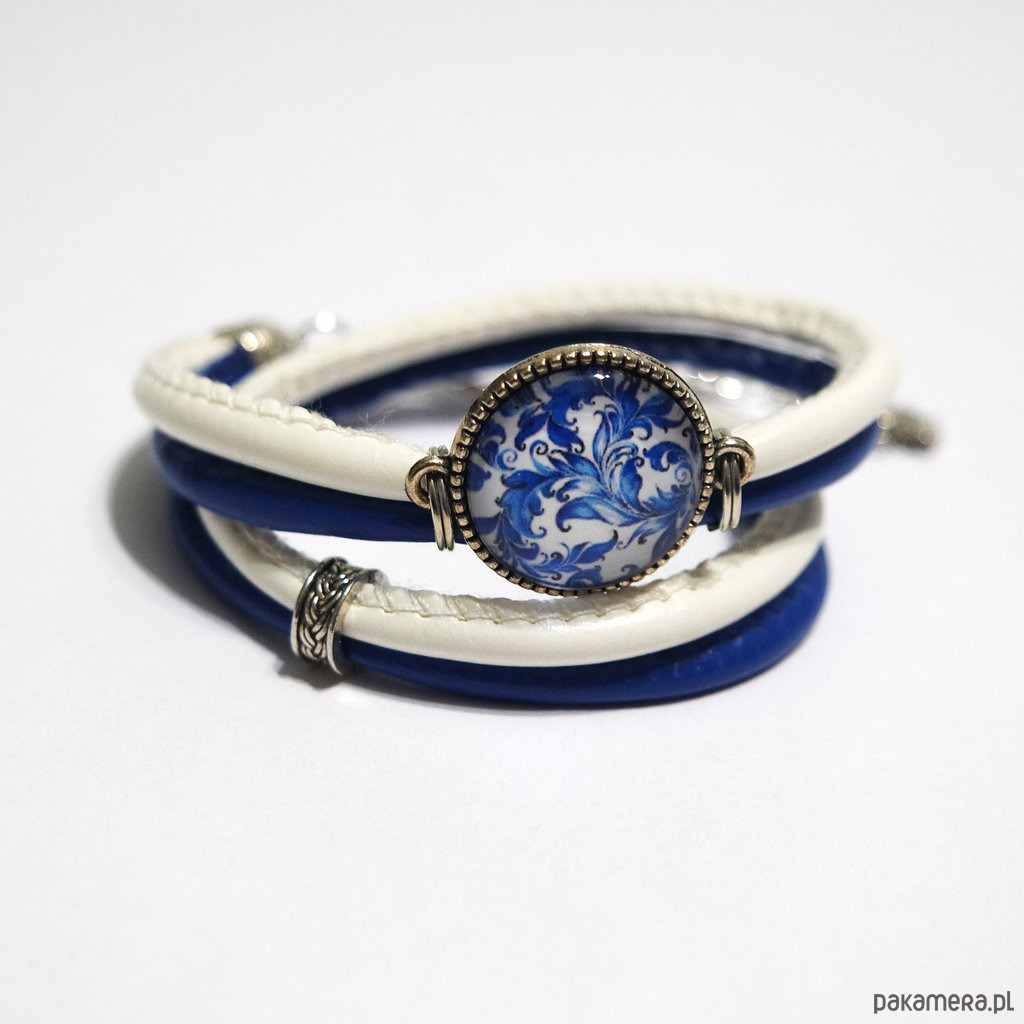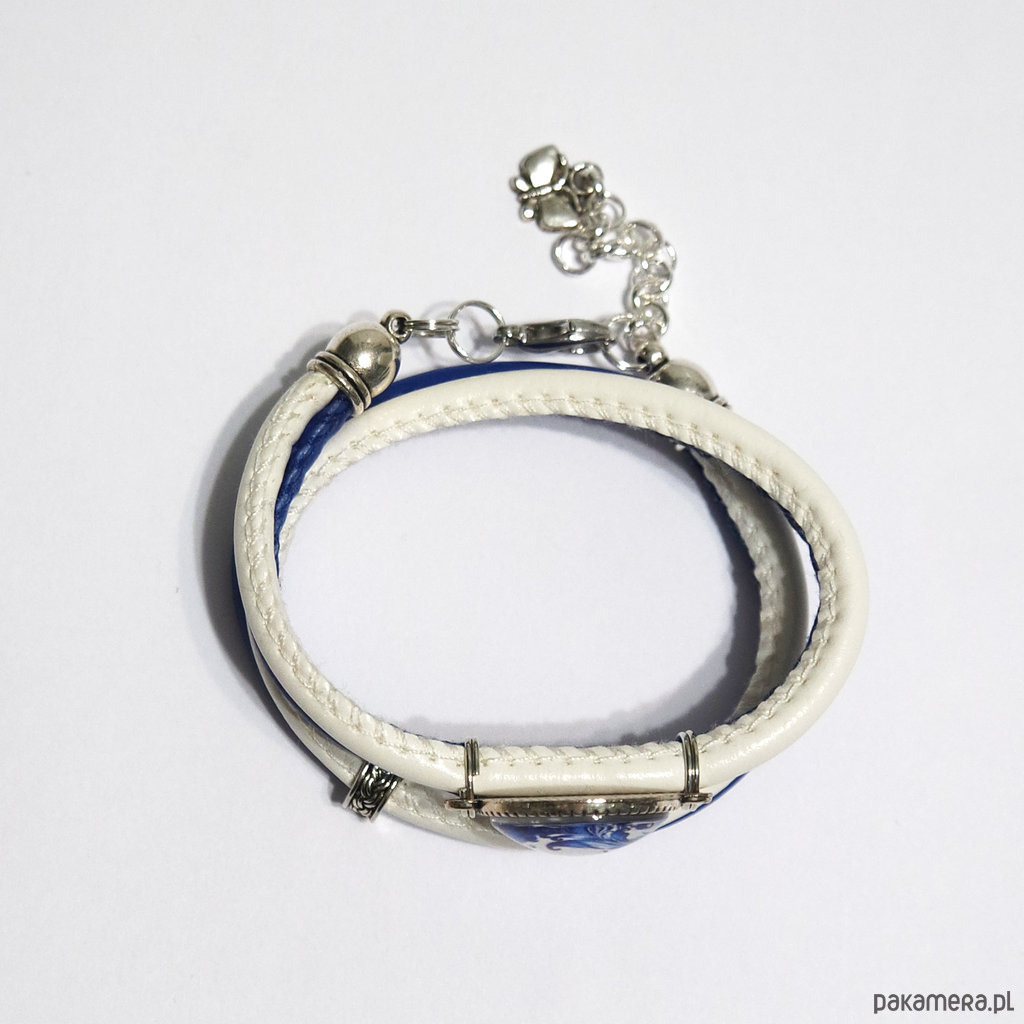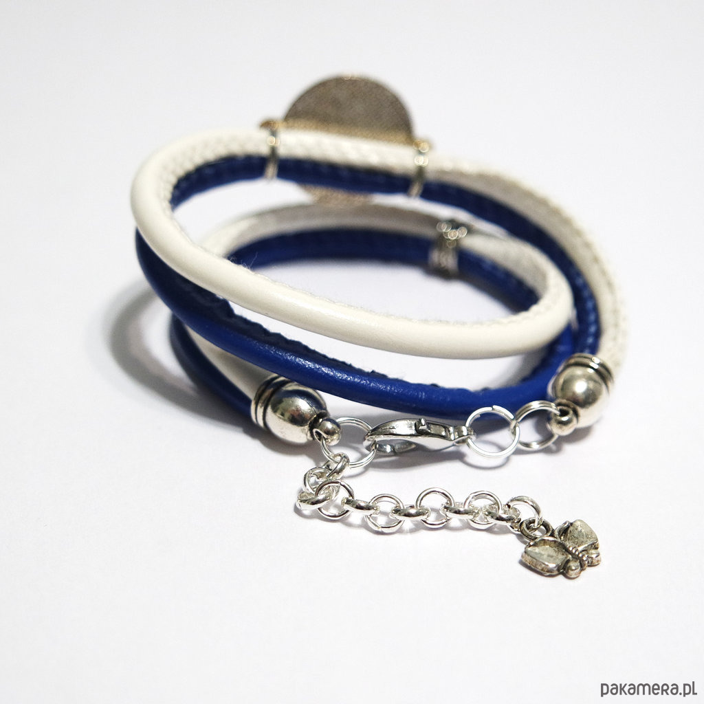 Bransoletka wykonana jest z rzemieni z eko-skóry.