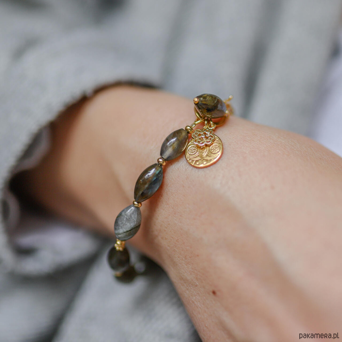Ta bransoletka z labradorytu powstała z myślą o kobietach, które niosą w sobie świat intuicji – cichej, pewnej i nieprzemijającej.