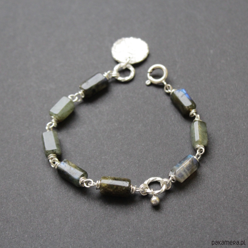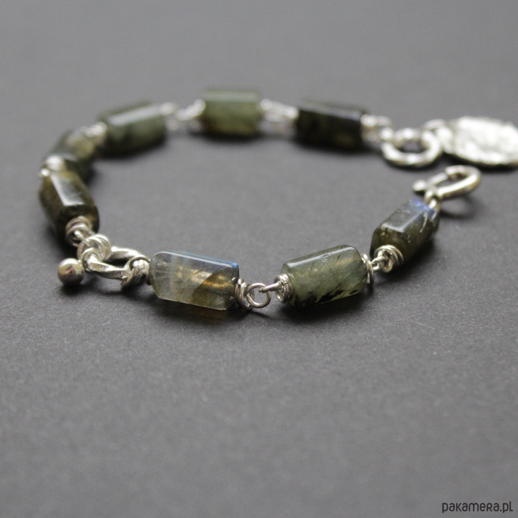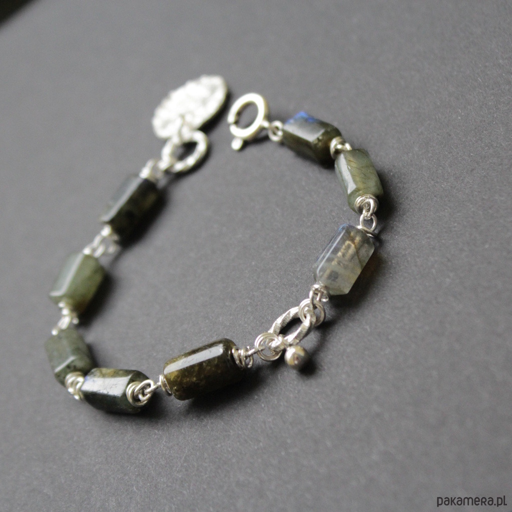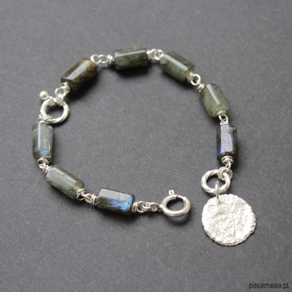 Bransoletka została wykonana ze srebra próby 925 oraz przepięknych bryłek labradorytów wielkości 0,8-1 cm.