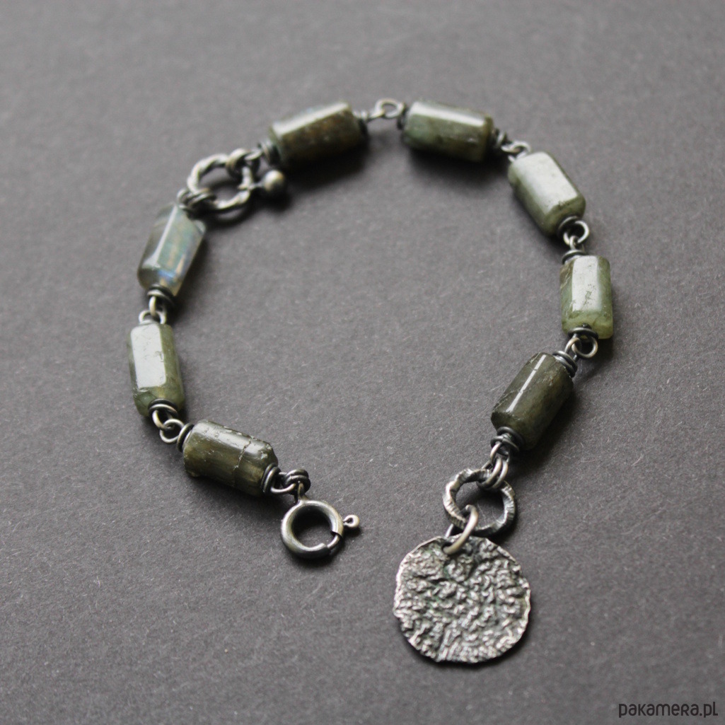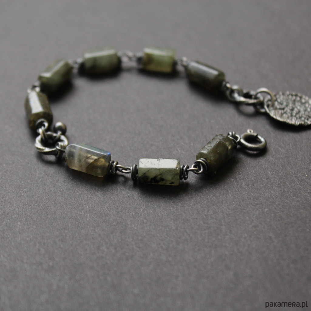 Bransoletka została wykonana zoksydowanego srebra próby 925 oraz przepięknych bryłek labradorytów wielkości 0,8-1 cm.