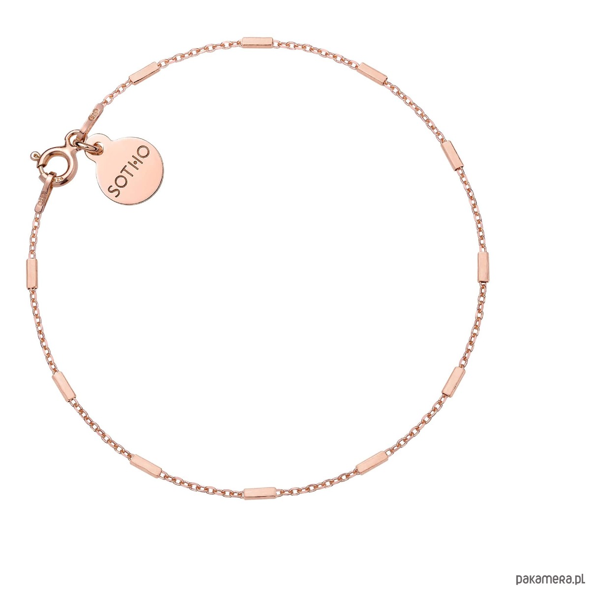 Złota bransoletka łańcuszkowa z logo marki. Całość wykonana ze srebra 925 powlekanego 18 karatowym różowym złotem.