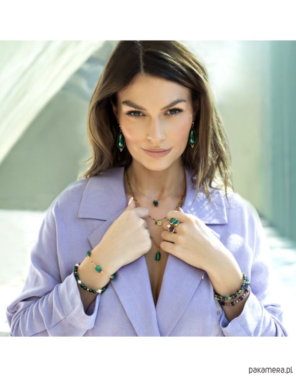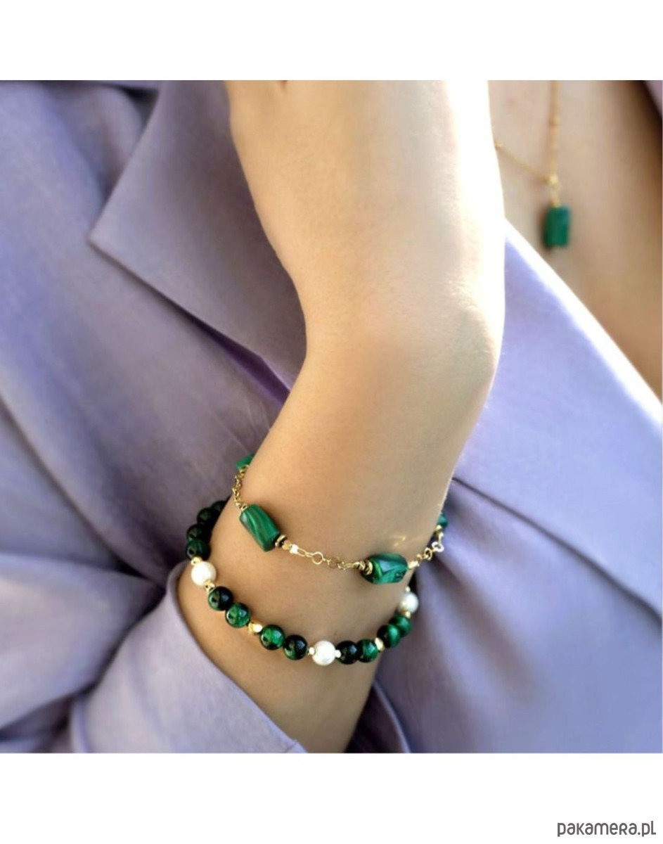 · Podkreśla elegancki charakter bransoletki, tworząc unikalne połączenie z malachitem