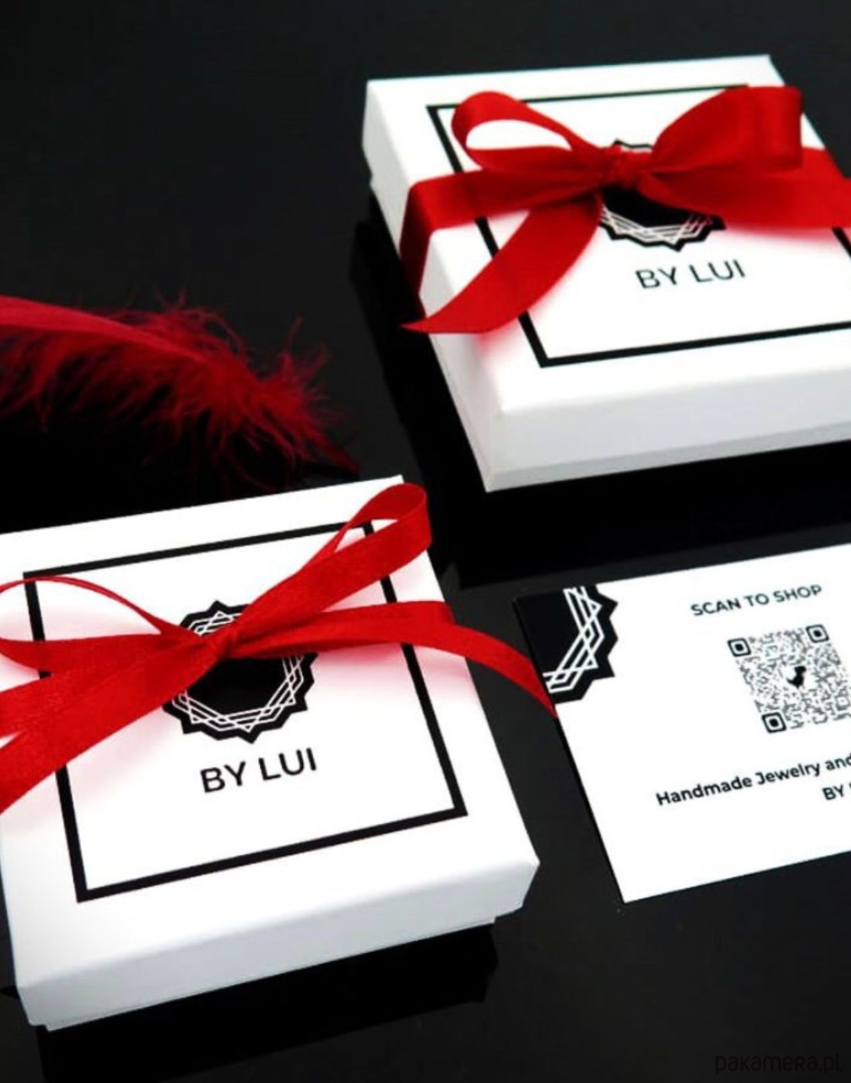Logowane Pudełko z Elegancką Wstążką: Każdy produkt zostaje umieszczony pudełku, gotowy do wręczenia jako upominek.