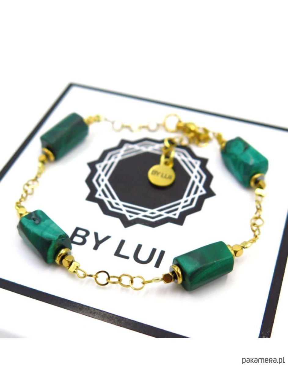 Bransoletka Łańcuszkowa z Zielonymi Kamieniami Malachitami JUNGLE