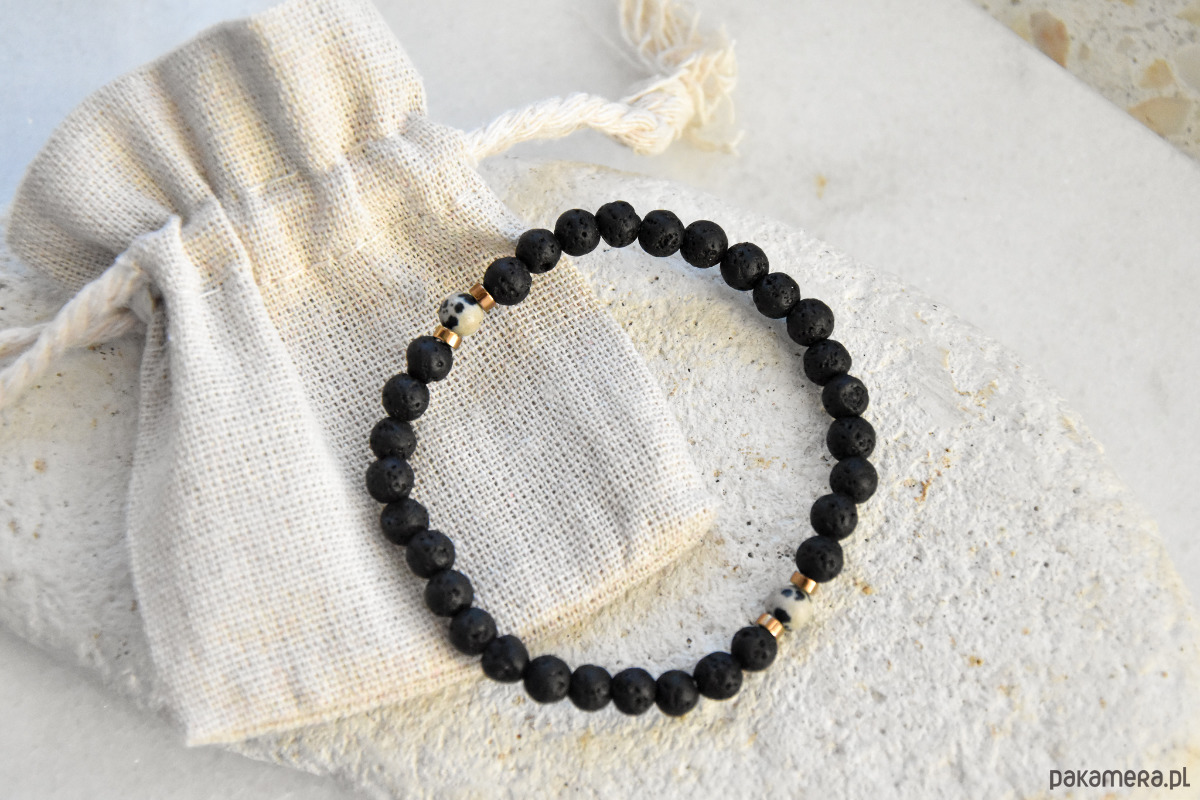 Materiał: lawa wulkaniczna, jaspis, hematyt, elastyczna żyłka jubilerska