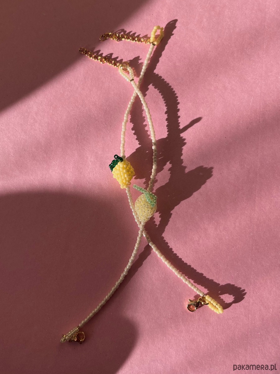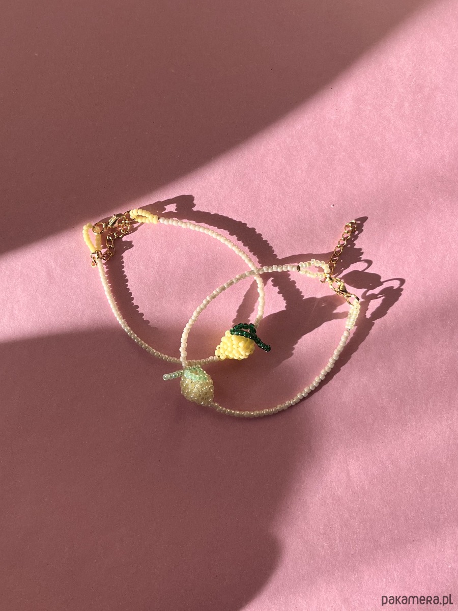 Owoce są ręcznie szyte z najwyższej jakości japońskich, szklanych koralików.