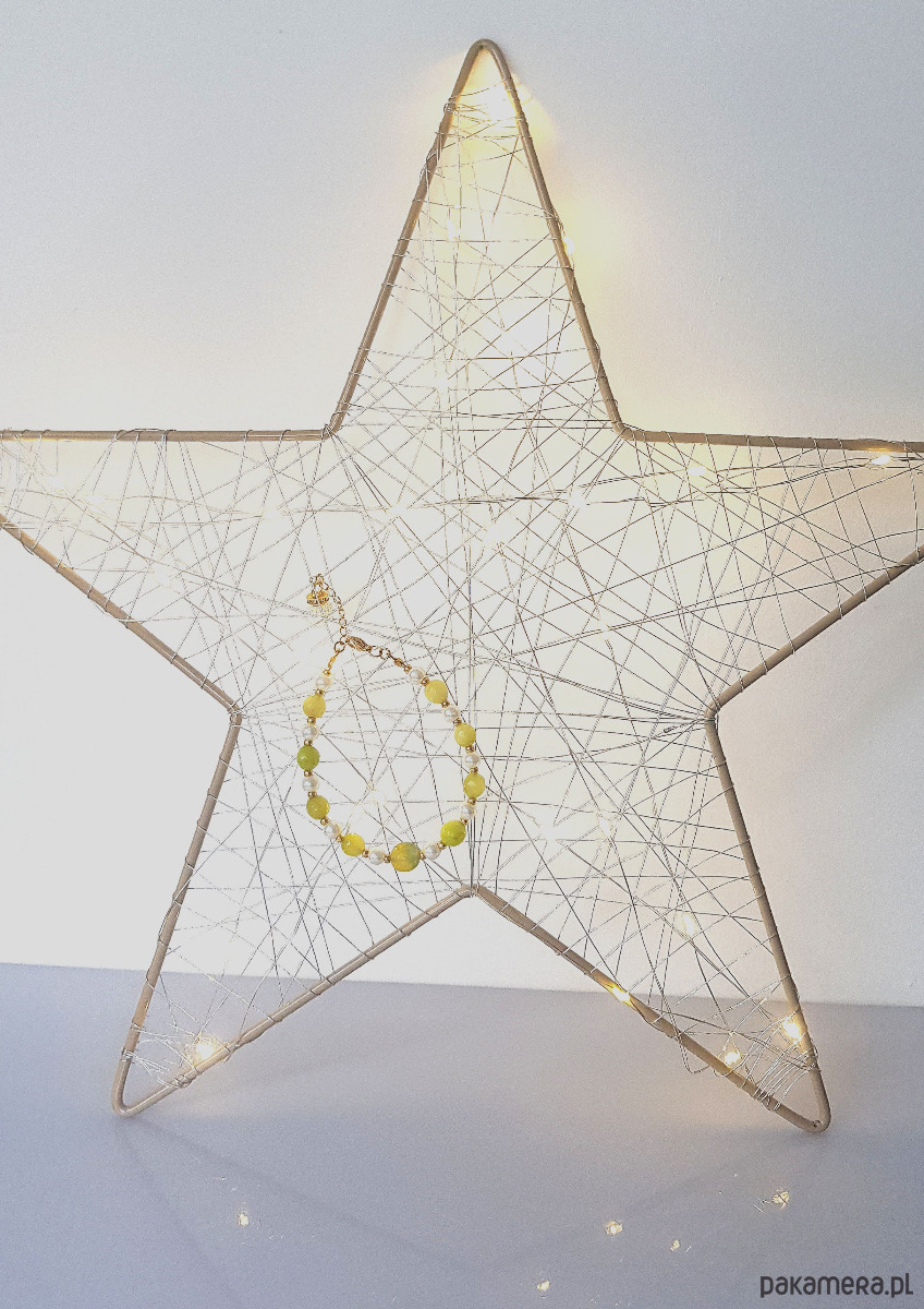 Elegancka, wesoła bransoletka z bombkową świąteczną zawieszką z akrylu.