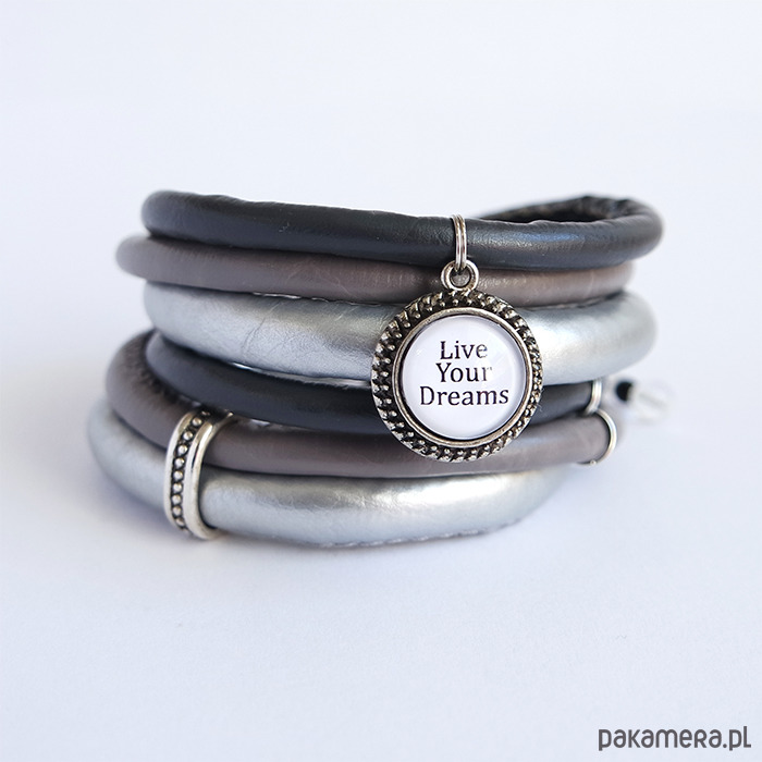 Bransoletka - Live Your Dreams - owijana, szara