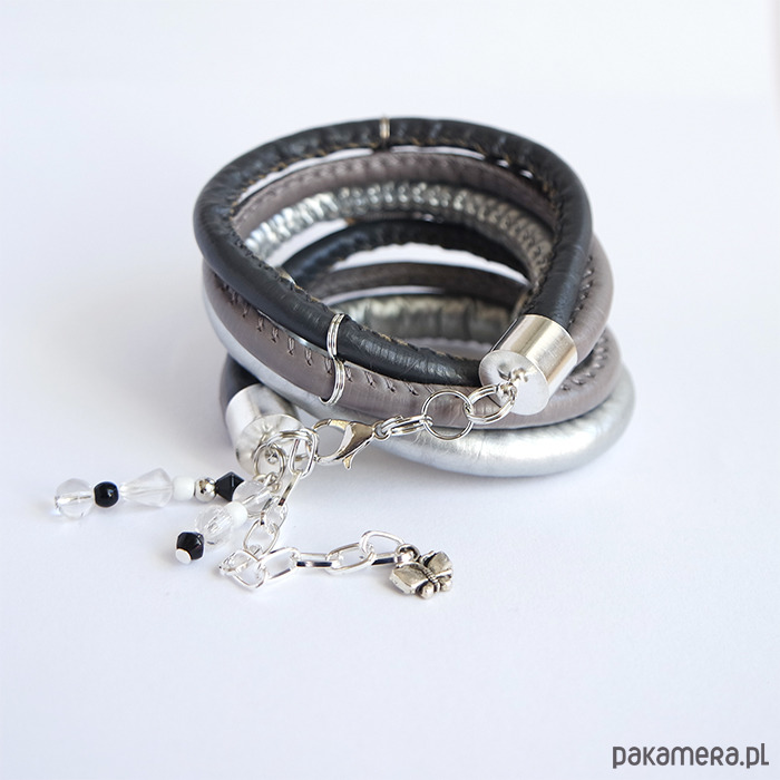Dwukrotnie owijana na nadgarstku. Wykończenia w kolorze srebrnym.