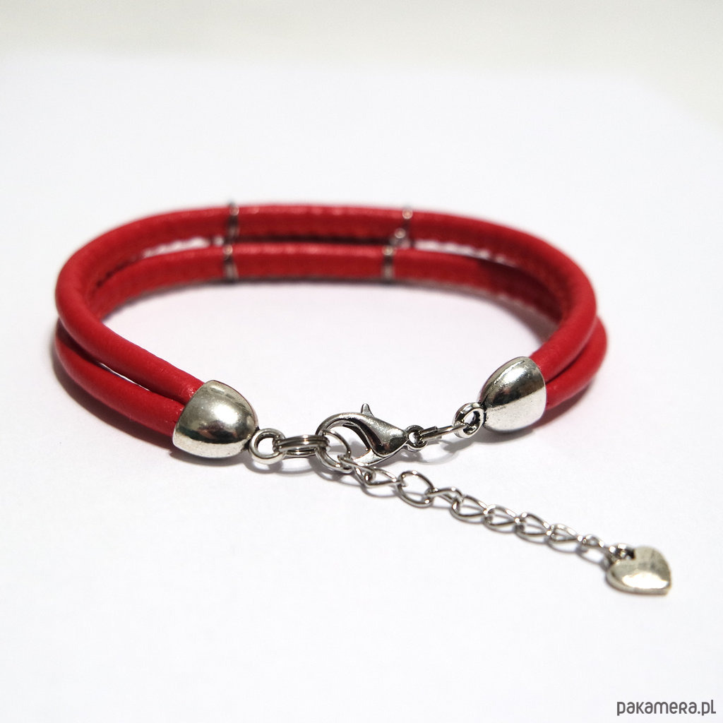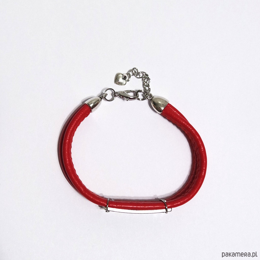 Bransoletka zrobiona jest z rzemieni ze skóry ekologicznej oraz metalowej przekładki.