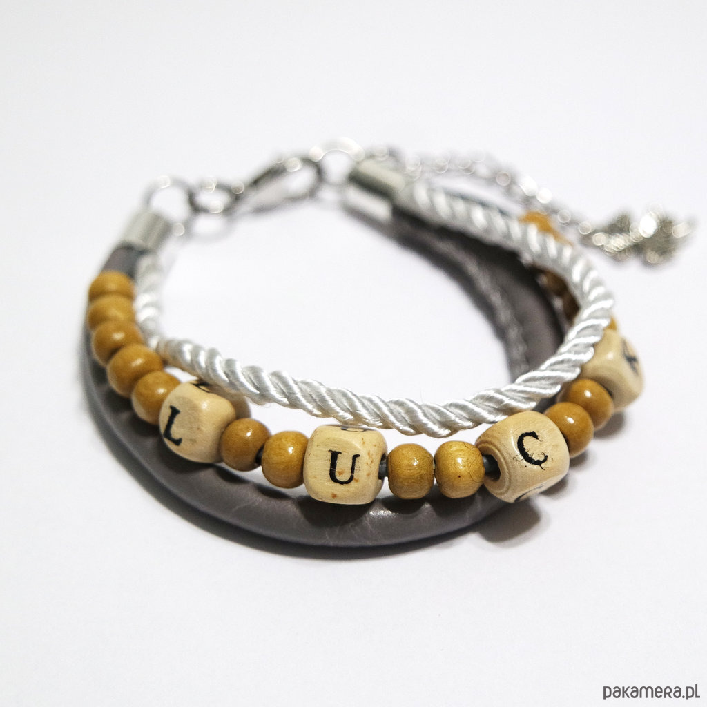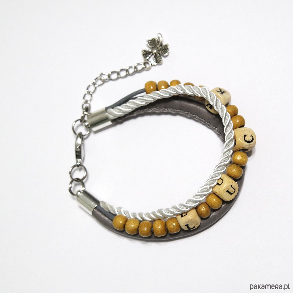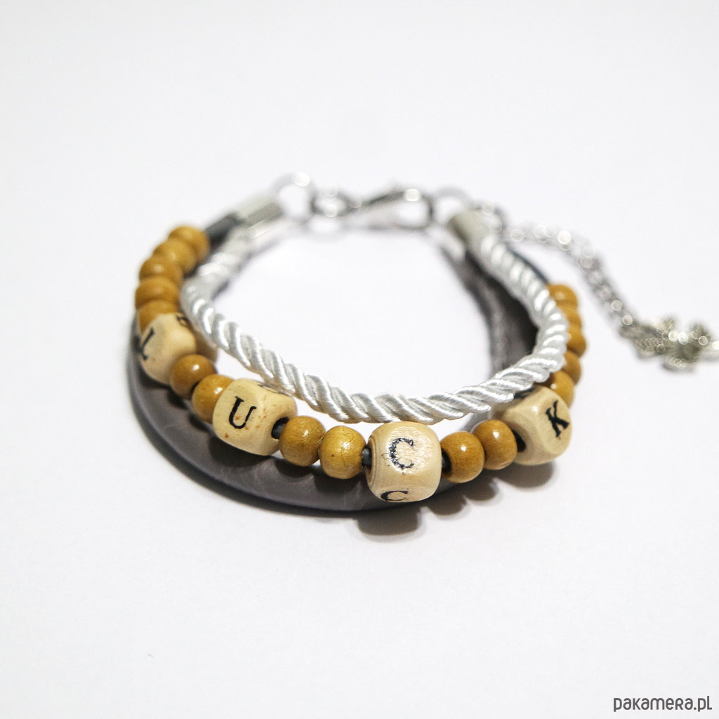Bransoletka - LUCK koraliki drewniane - rzemienie