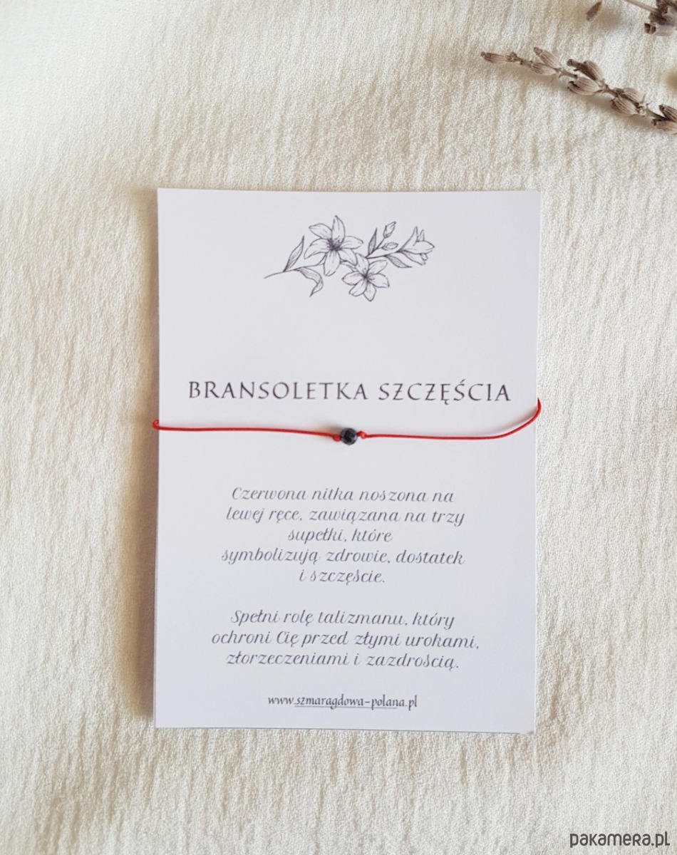 Kolor czerwony, jest kolorem ochronnym, taki amulet ma chronić przed wpływem złego oka – potężnej siły generowanej przez ludzi, którzy z natury są źli. Czerwona nitka ma wzmacniać aurę noszącej go osoby i dzięki temu uchronić przed urokiem, złorzeczeniem, wampiryzmem energetycznym, zazdrością i oszczerstwami. Już w czasach starożytnych wierzono, że człowiek zdominowany przez złe emocje może wywierać silny wpływ na innych ludzi. Moc owego oddziaływania ma nieść jego spojrzenie, stąd właśnie wzięło się określenie „złe oko”. Oczy mają przekształcać negatywną energię takiej osoby w nieszczęście i niepowodzenia zauroczonych.