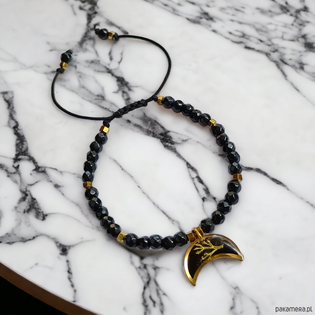 Bransoletka : lunula ze złotymi roślinkami : onyks : GOLDEN FLORA