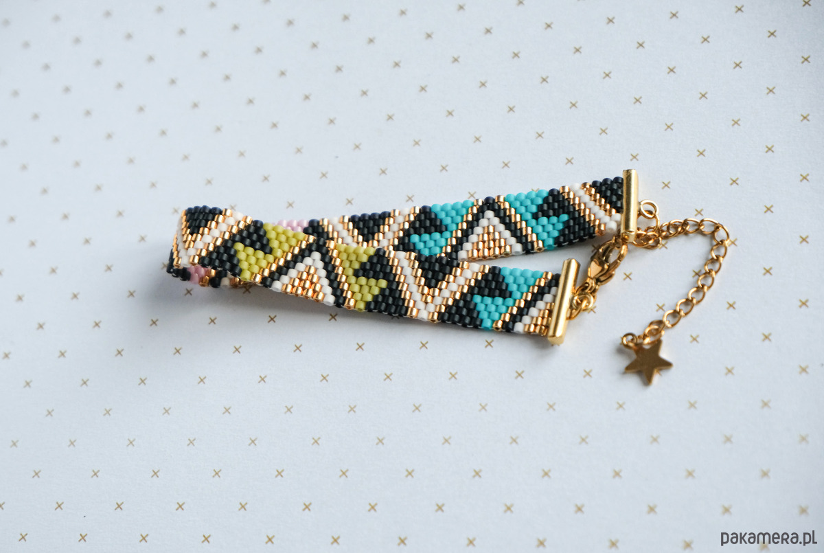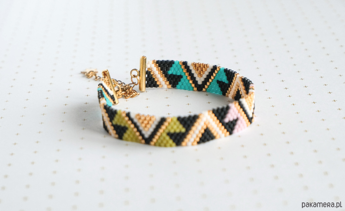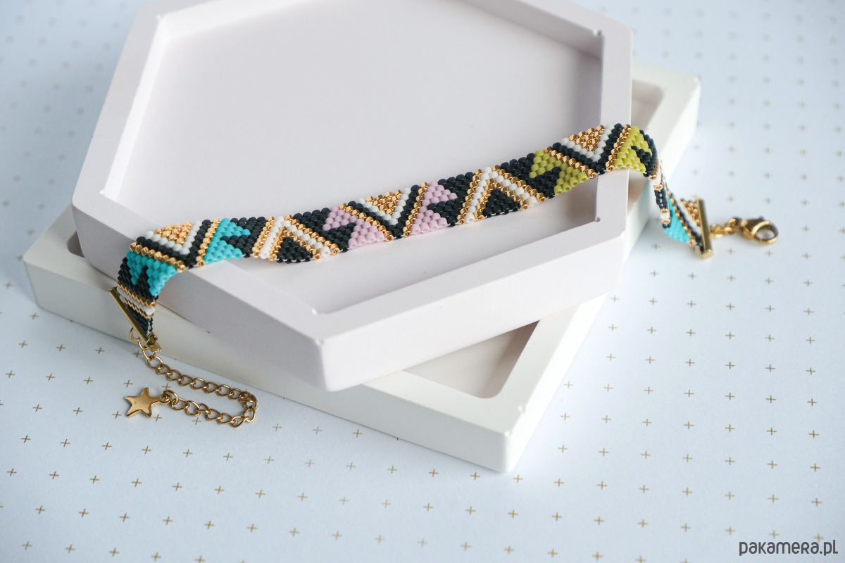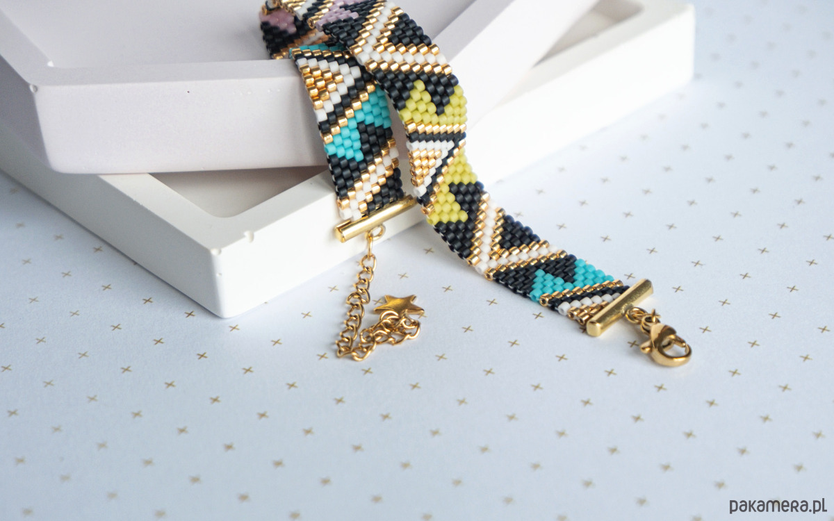 Subtelna, kobieca i wyjątkowa — wykonana z najwyższej jakości japońskich koralików Miyuki, ozdobiona pozłacanymi elementami ze stali szlachetnej.