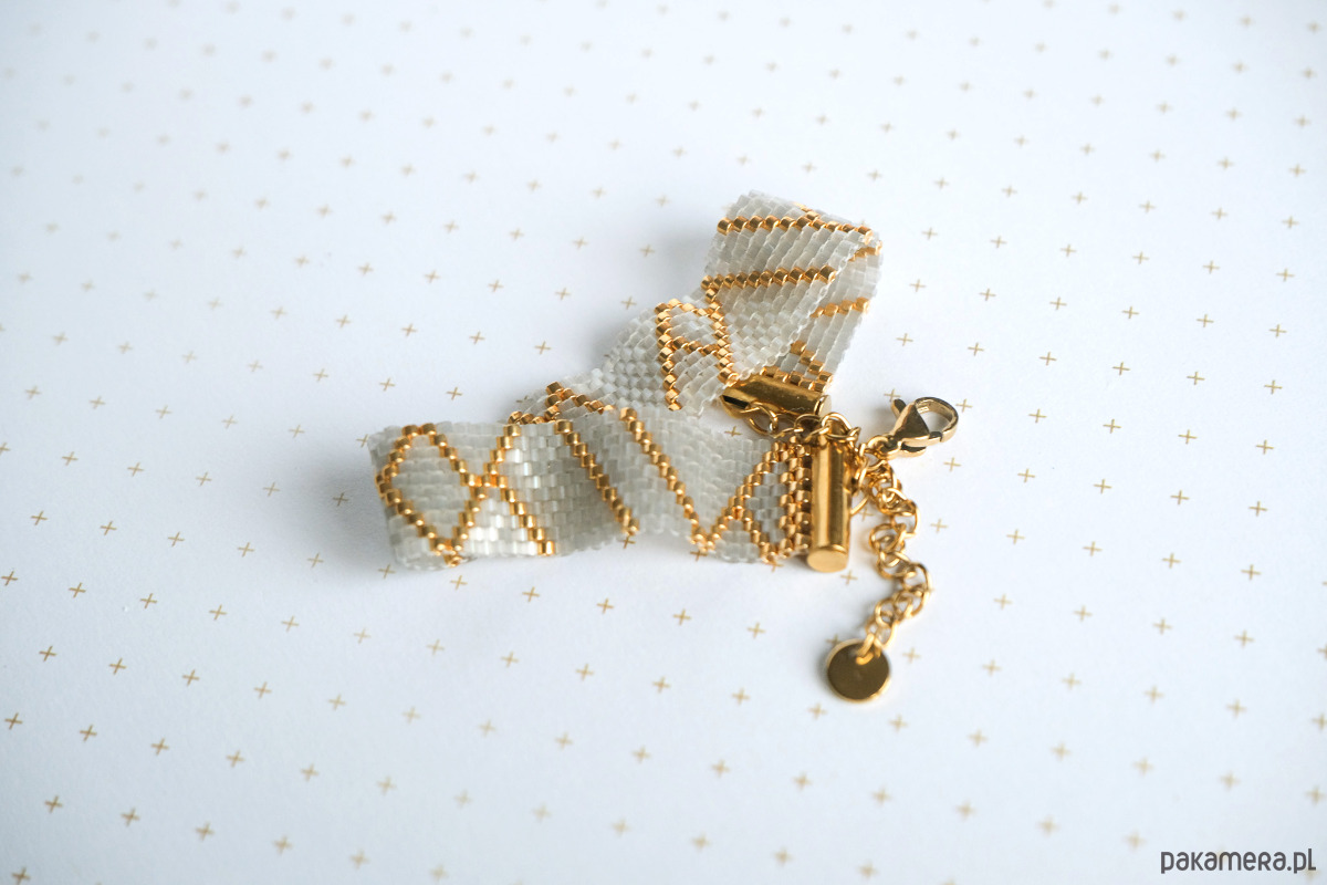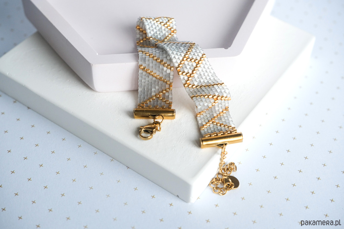 Subtelna, stylowa i pełna elegancji — wykonana z wysokiej jakości koralików Miyuki oraz wykończona pozłacanymi elementami ze stali szlachetnej. Idealnie układa się na nadgarstku, gwarantując komfort noszenia przez cały zimowy dzień.