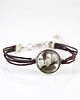 Grafika ukryta w delikatnej bransoletce pod osłoną przeźroczystego półokrągłego szkiełka.
