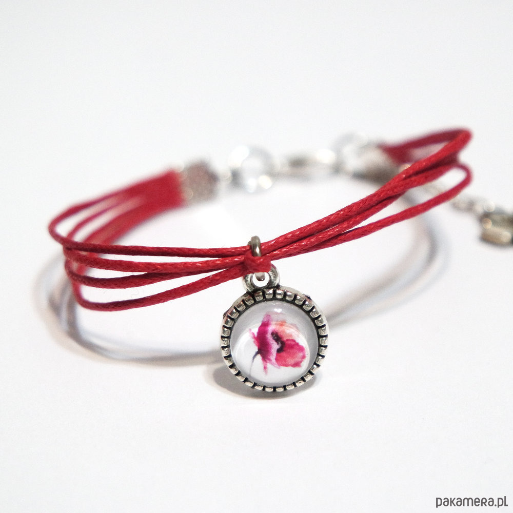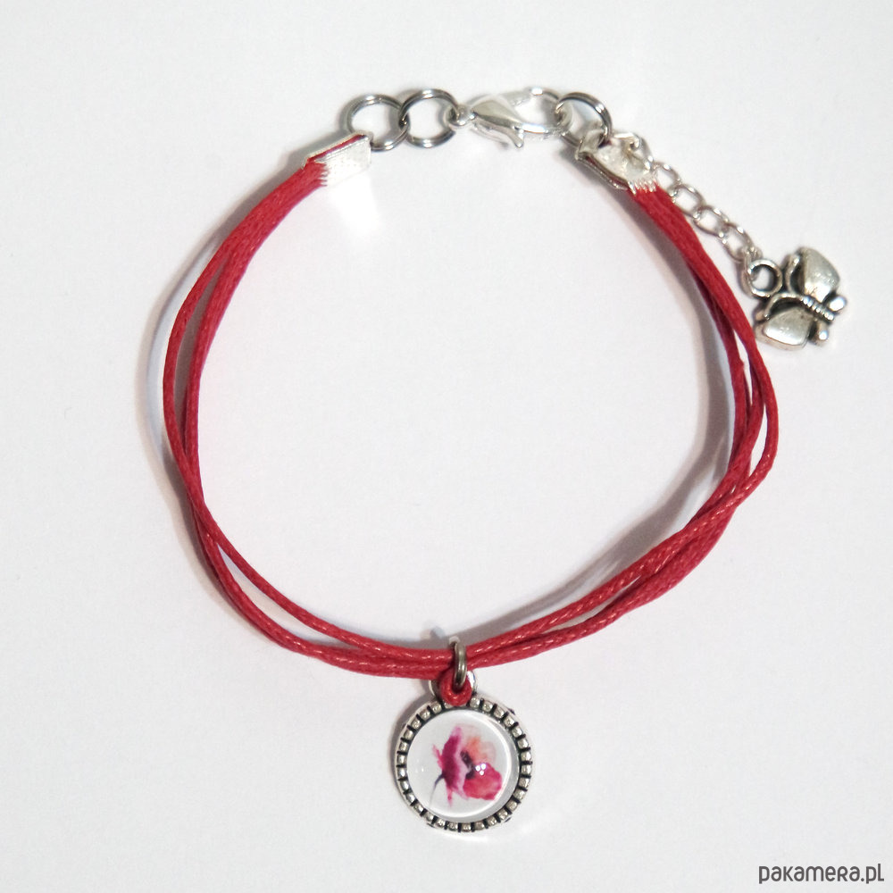 Bransoletka - Mak - sznureczki, czerwona