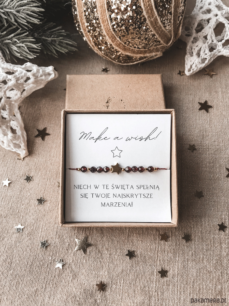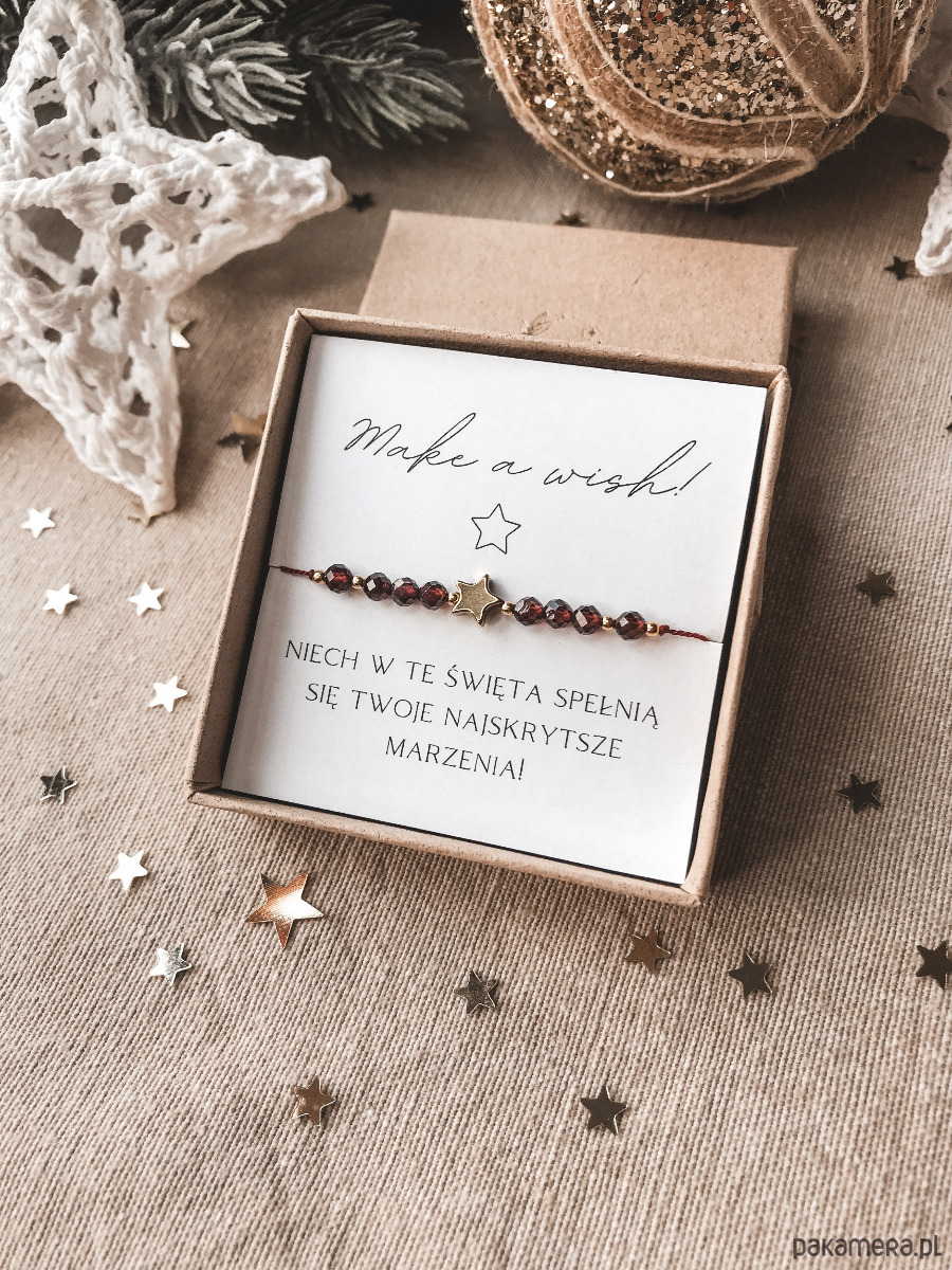 Bransoletka Make a wish bordowa z granatem prezent na Święta