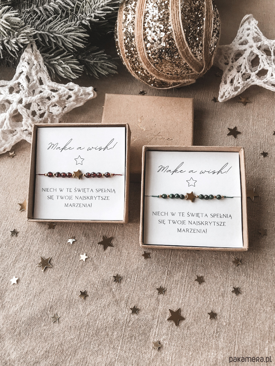 Do bransoletki dołączona jest karteczka z życzeniami świątecznymi widocznymi na zdjęciu.