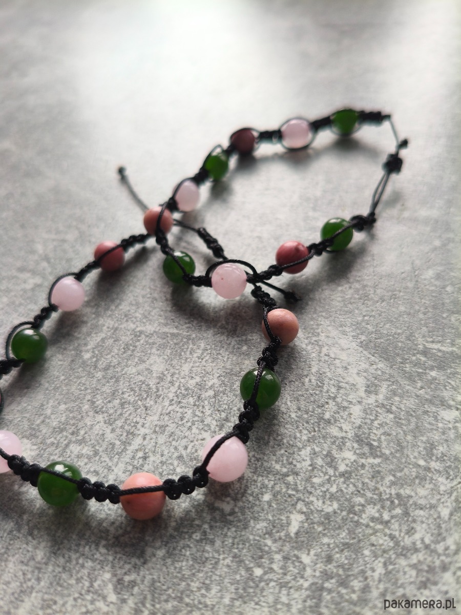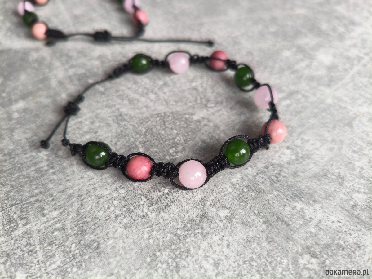 Połączenie Zielonego Jaspisu z Kwarcem Różowym i Rodonitem to prawdziwa bomba energetyczna dla Twojej Czakry Serca.