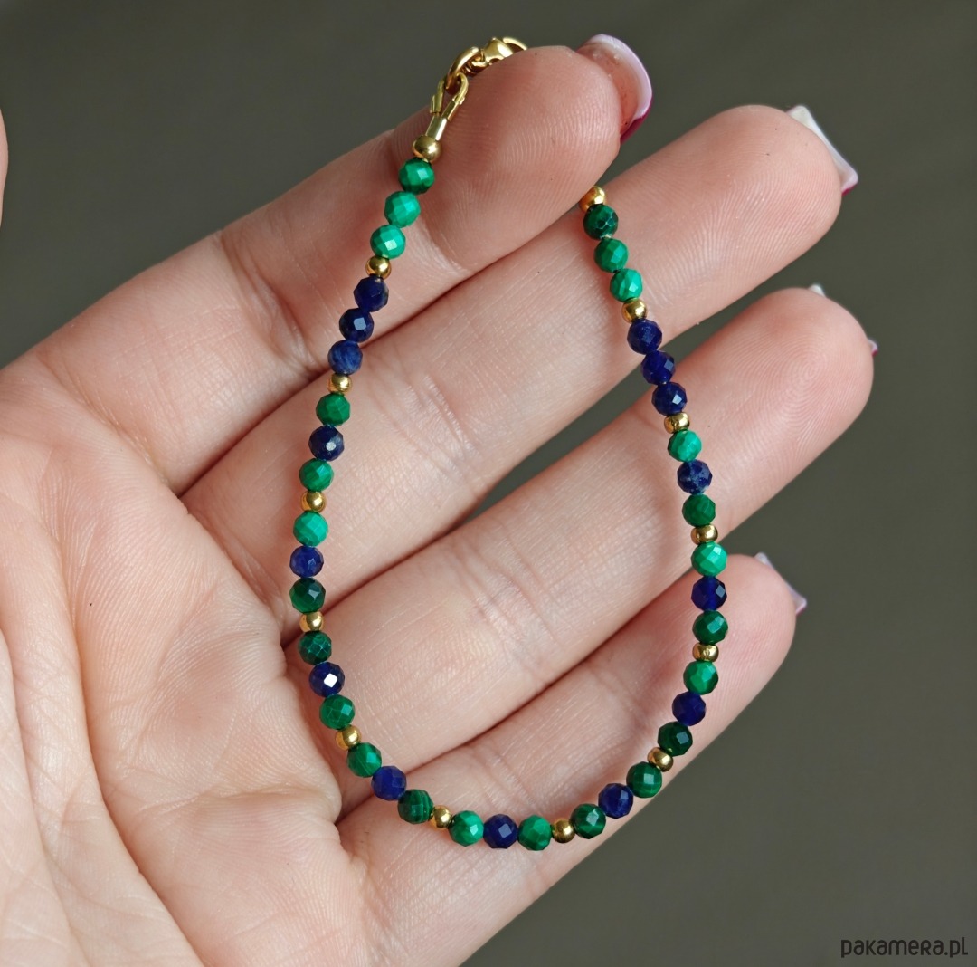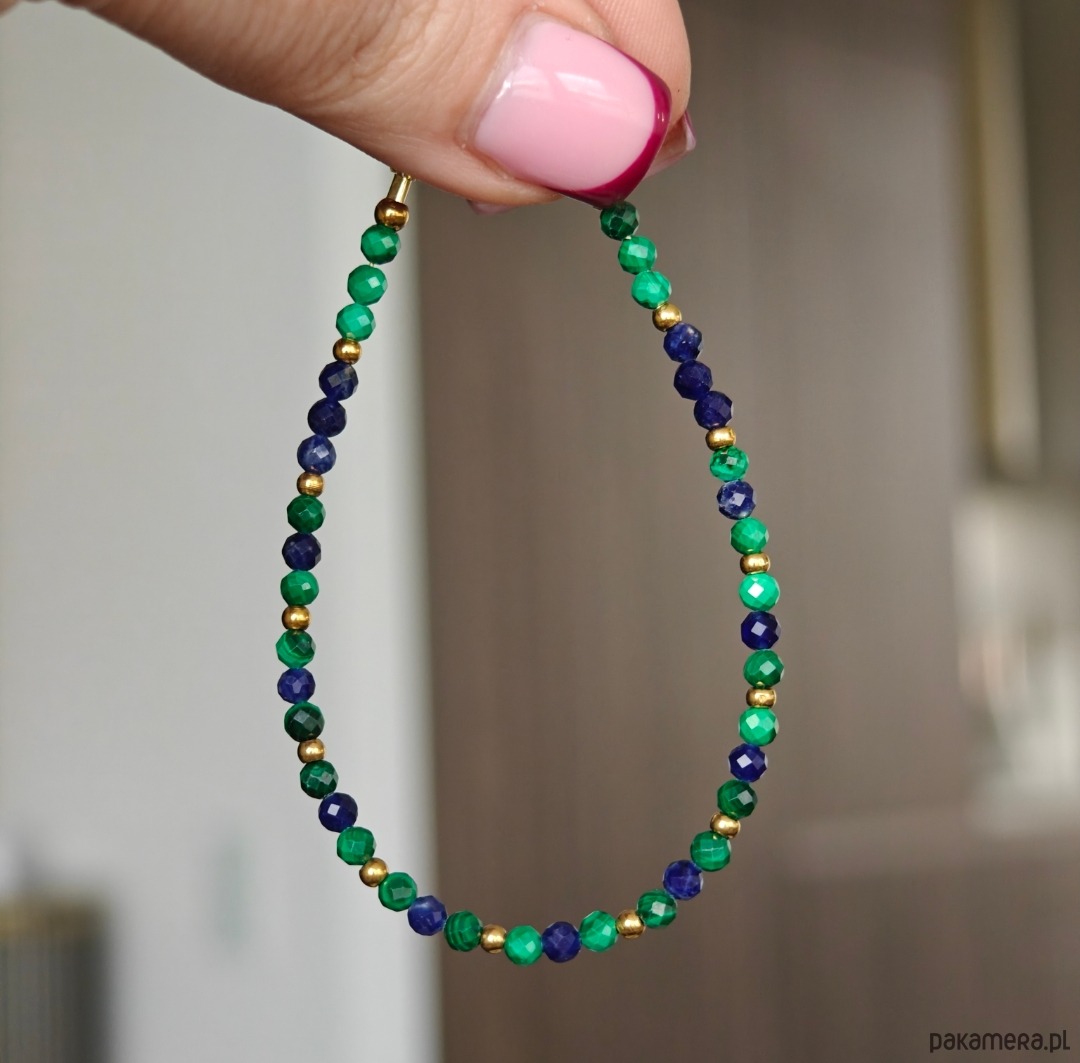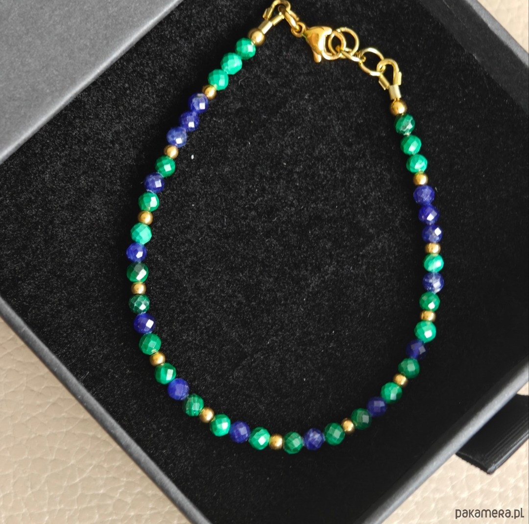 Bransoletka wykonana z naturalnych kamieni — malachitu i sodalitu. 🌿💙
