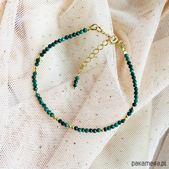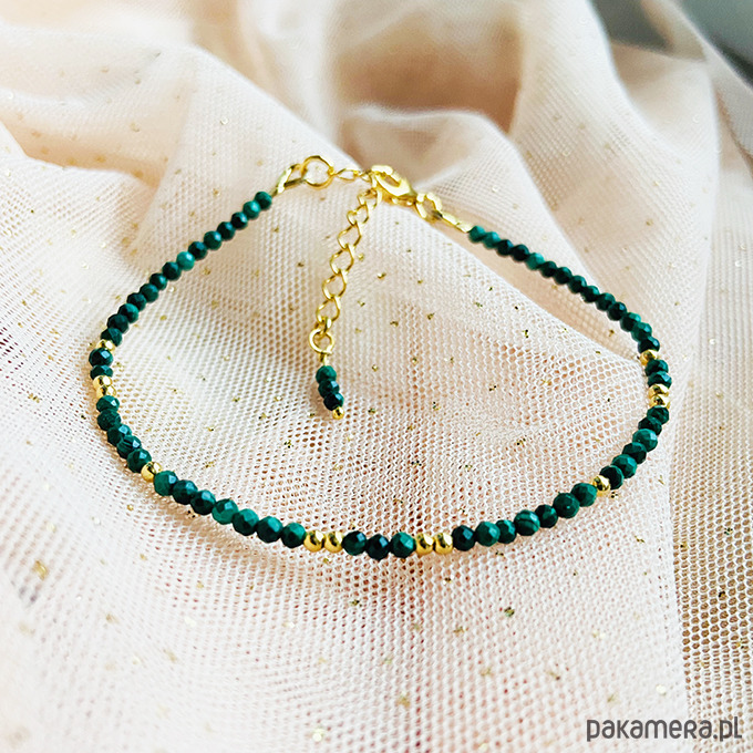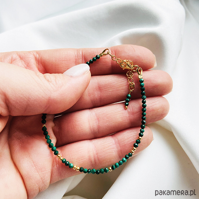 Elegancka bransoletka z pięknych, fasetowanych malachitów, zachwycająca naturalnym blaskiem i głębią koloru. Ręcznie wykonana , Subtelna, a zarazem wyrazista – idealna do noszenia na co dzień i na specjalne okazje.