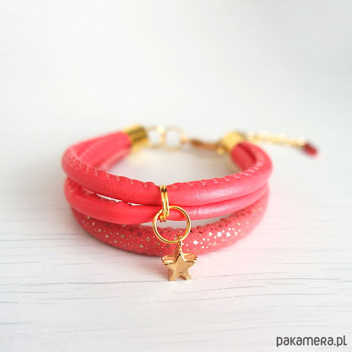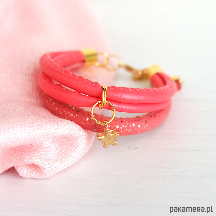 Bransoletka - Malinowa, gwiazdka - złota