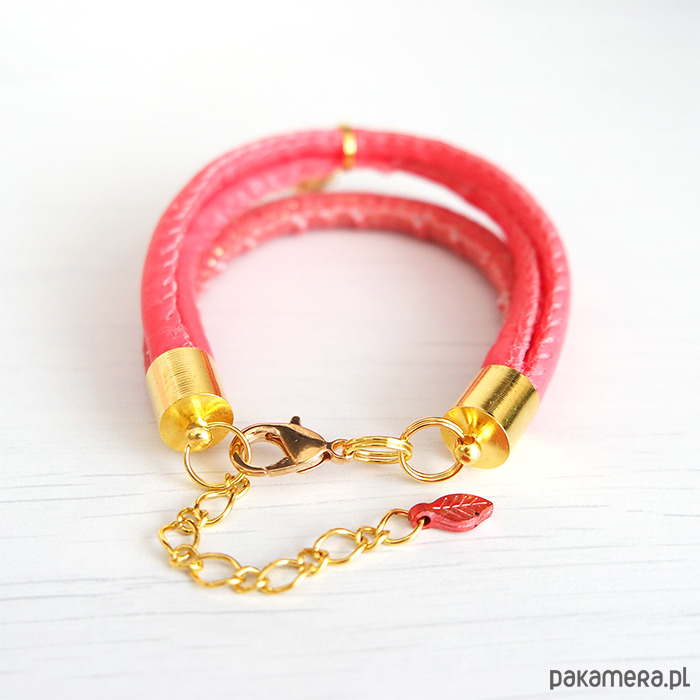 Bransoletka zrobiona jest z rzemieni z eko-skóry oraz materiału.