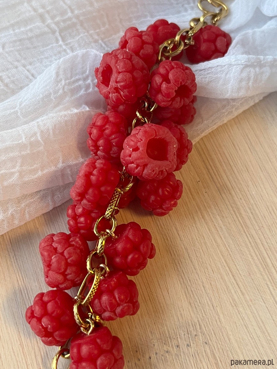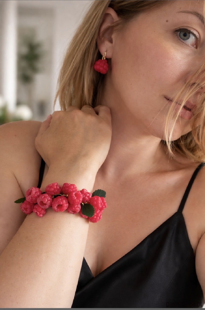 Oryginalna, owocowa biżuteria inspirowana naturą i latem. Soczyste maliny w intensywnym kolorze czerwonym przyciągają uwagę i dodają stylizacji wyjątkowego charakteru.