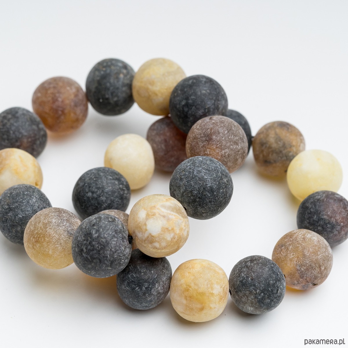 Bransoletka z matowych kul – bursztyn bałtycki koniakowy, mleczny i czarny