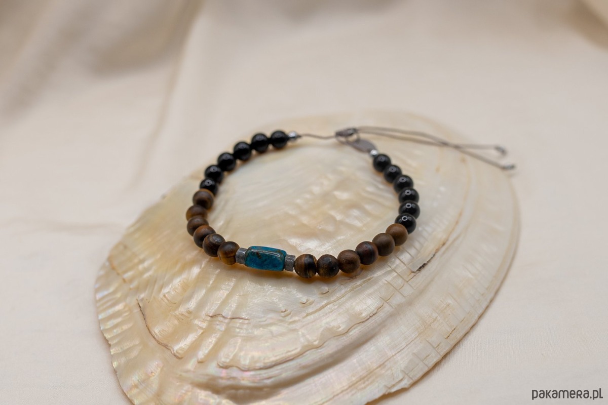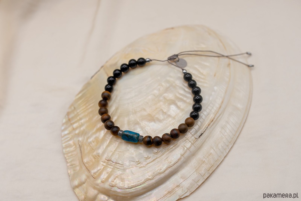 Bransoletka Męska Apatyt Tygrysie Oko Onyks to ręcznie wykonana biżuteria dopasowana idealnie do współczesnego mężczyzny. Biżuteria z kamieni idealnie podkreśli Twój charakter.