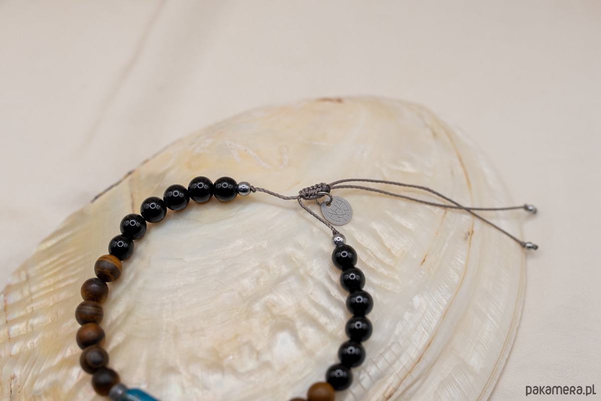 Rozmiar bransoletki jest regulowany. Regulacja za pomocą wiązania typu makrama.