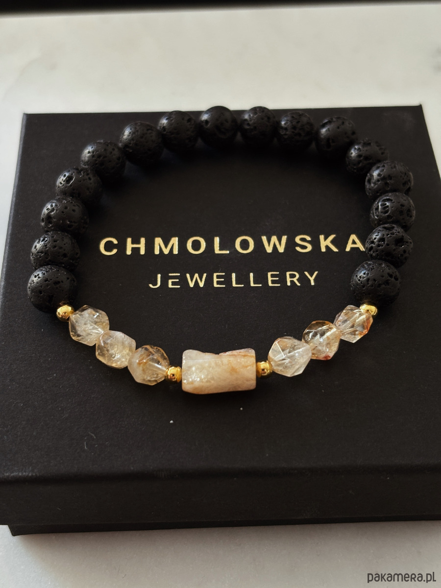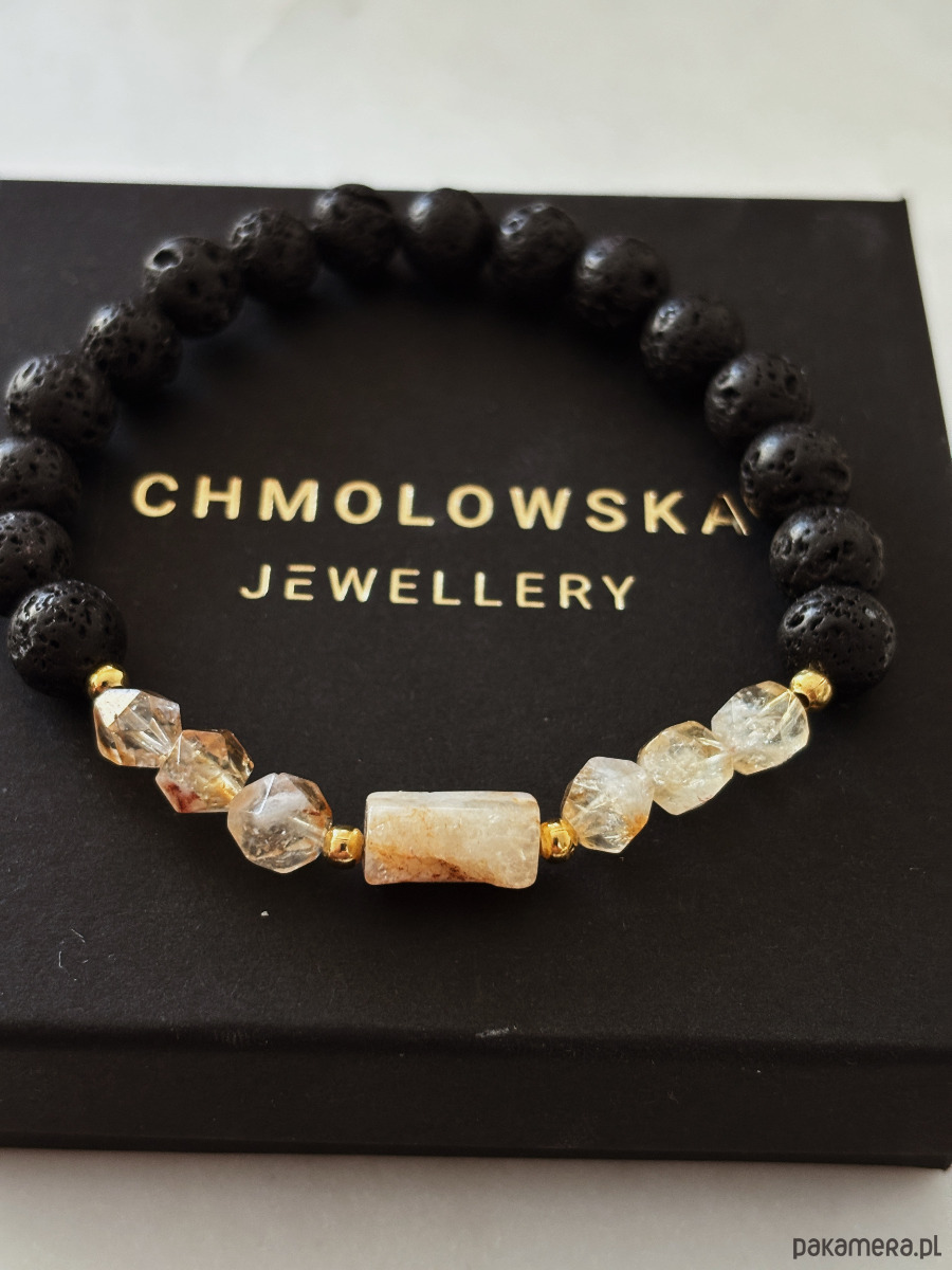 Bransoletka z lawą wulkaniczną i cytrynem ma prostą formę, ale wygląda bardzo elegancko i stylowo. Kontrast surowej czerni lawy z ciepłym blaskiem cytrynu sprawia, że jest wyrazista, a jednocześnie łatwa do noszenia na co dzień. To klasyczne połączenie dla osób, które lubią minimalizm z charakterem.