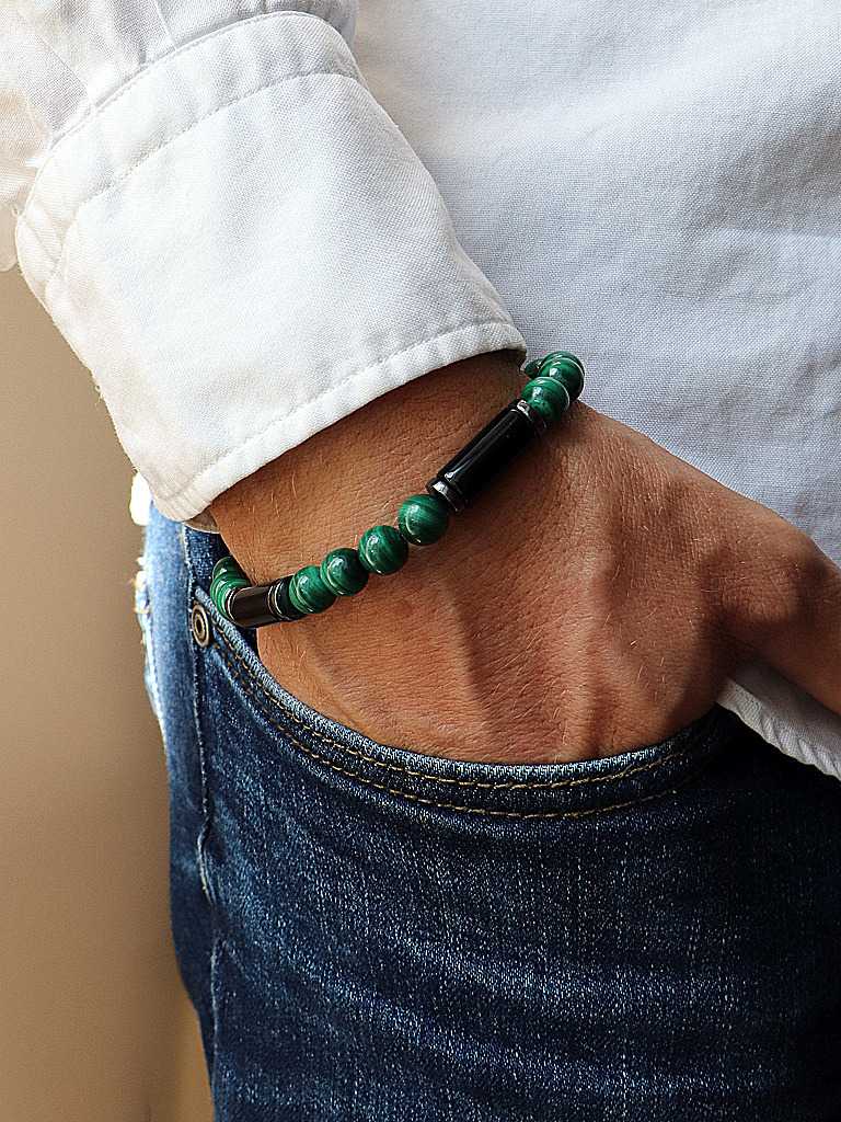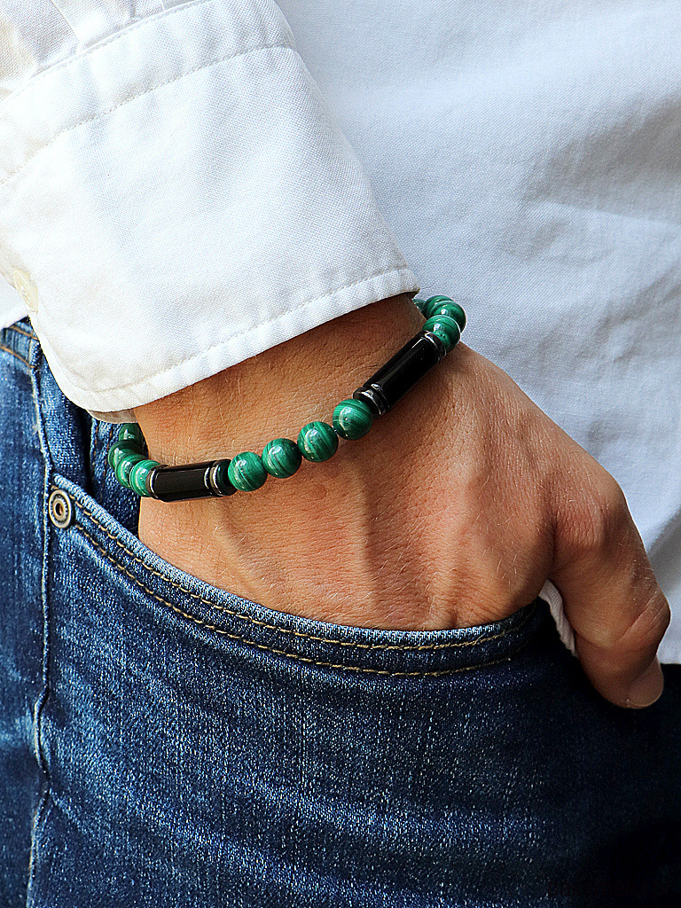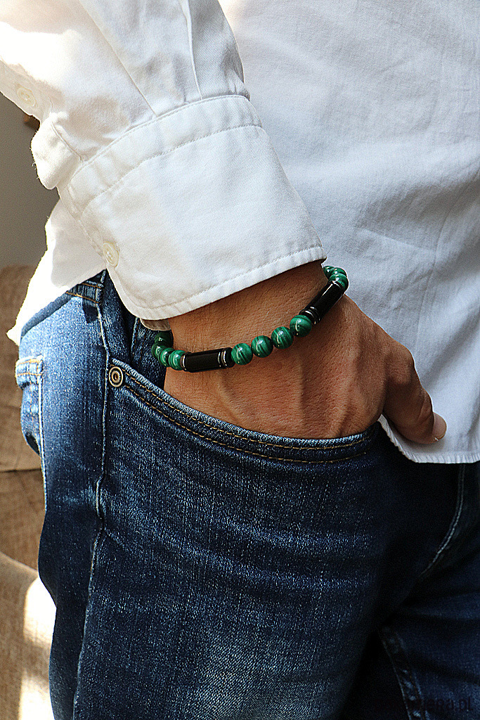 Męska bransoletka – Czarny Turmalin, Malachit, Hematyt