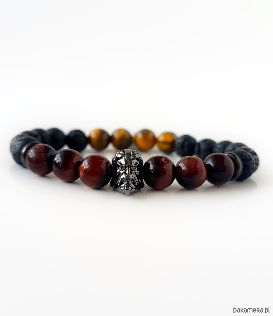 Bransoletka męska HELLBOY- bawole oko, lawa, tygrysie oko