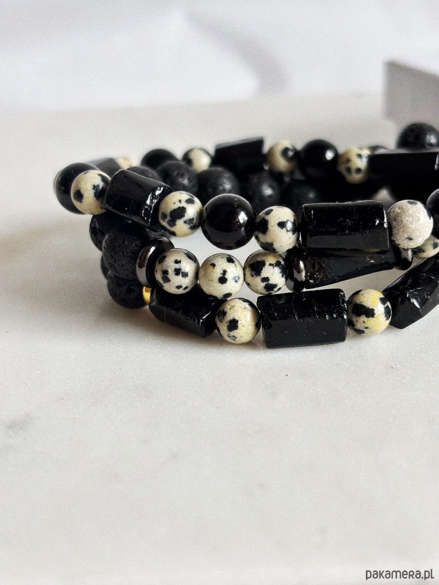 Bransoletka męska Jaspis Dalmatyński i Turmalin