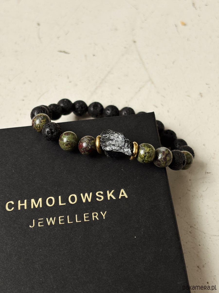 Bransoletka męska Jaspis Smocza Krew i Turmalin