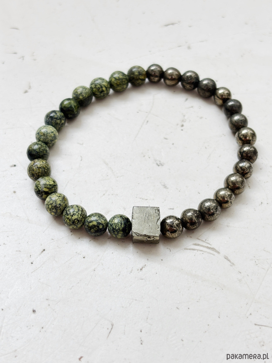 Bransoletka Męska Piryt i Serpentynit