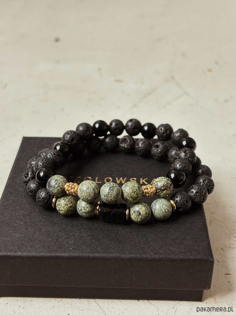 Bransoletka męska Serpentynit i Turmalin