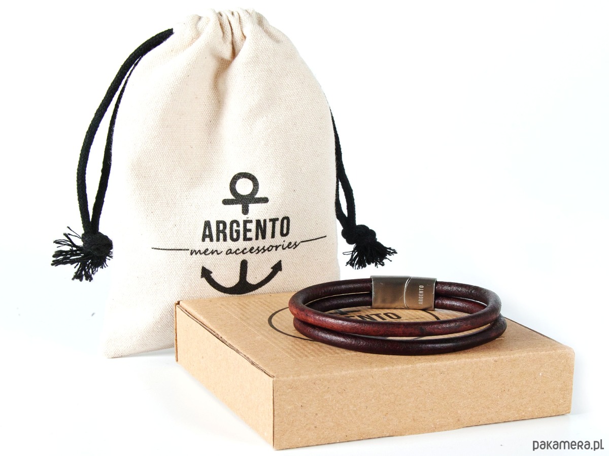 Bransoletka Męska skórzana, rzemień brązowy- ArgentoMen