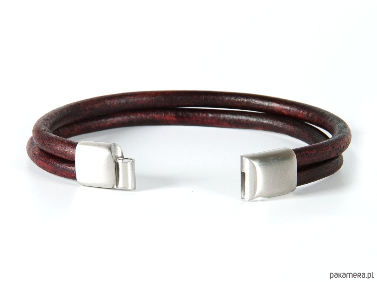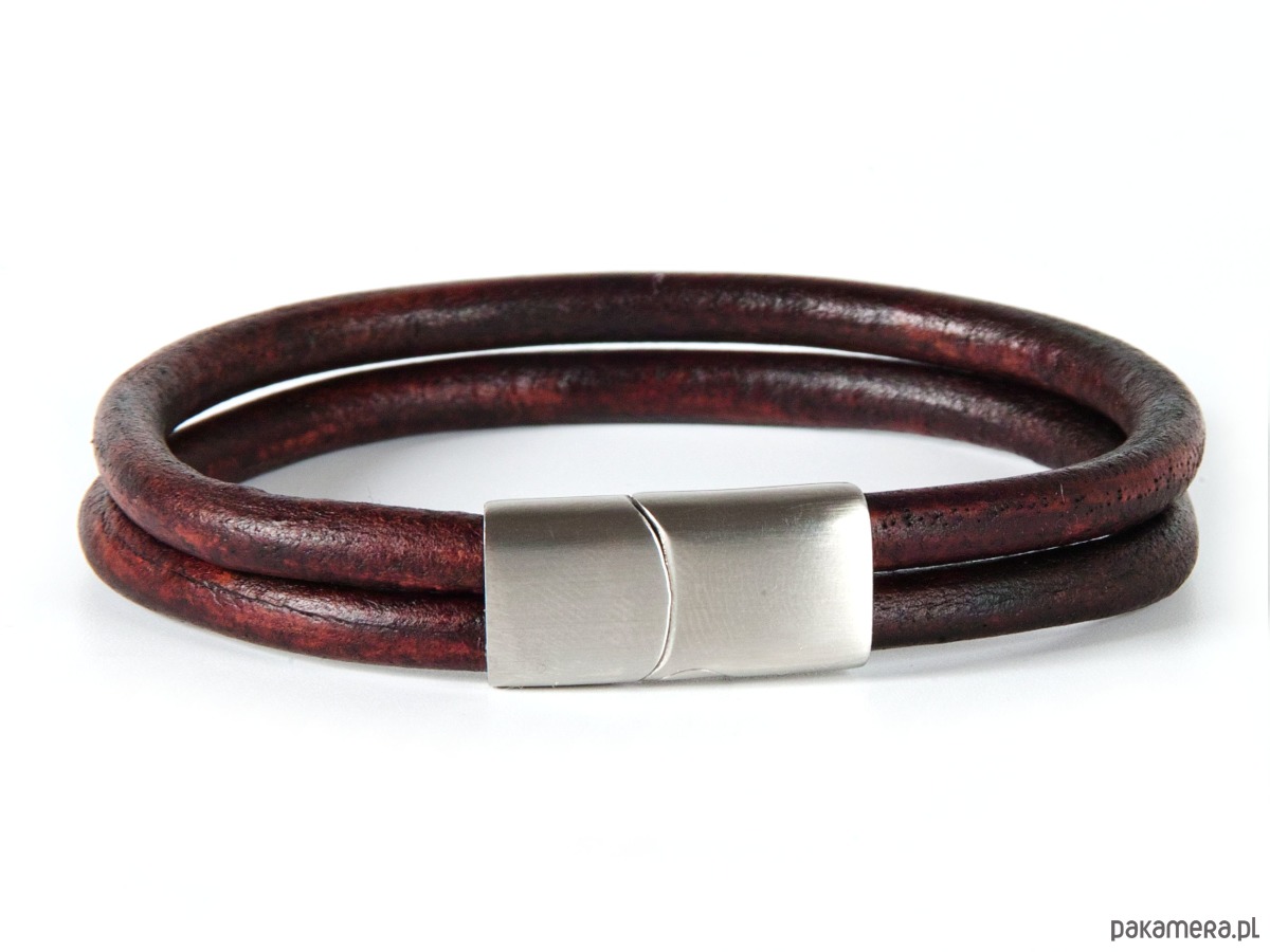 Modna bransoleta męska zrobiona z wysokogatunkowego rzemienia gładkiego ze skóry naturalnej w kolorze ciemnego brązu. Grubość pojedynczego rzemienia 0,5 cm