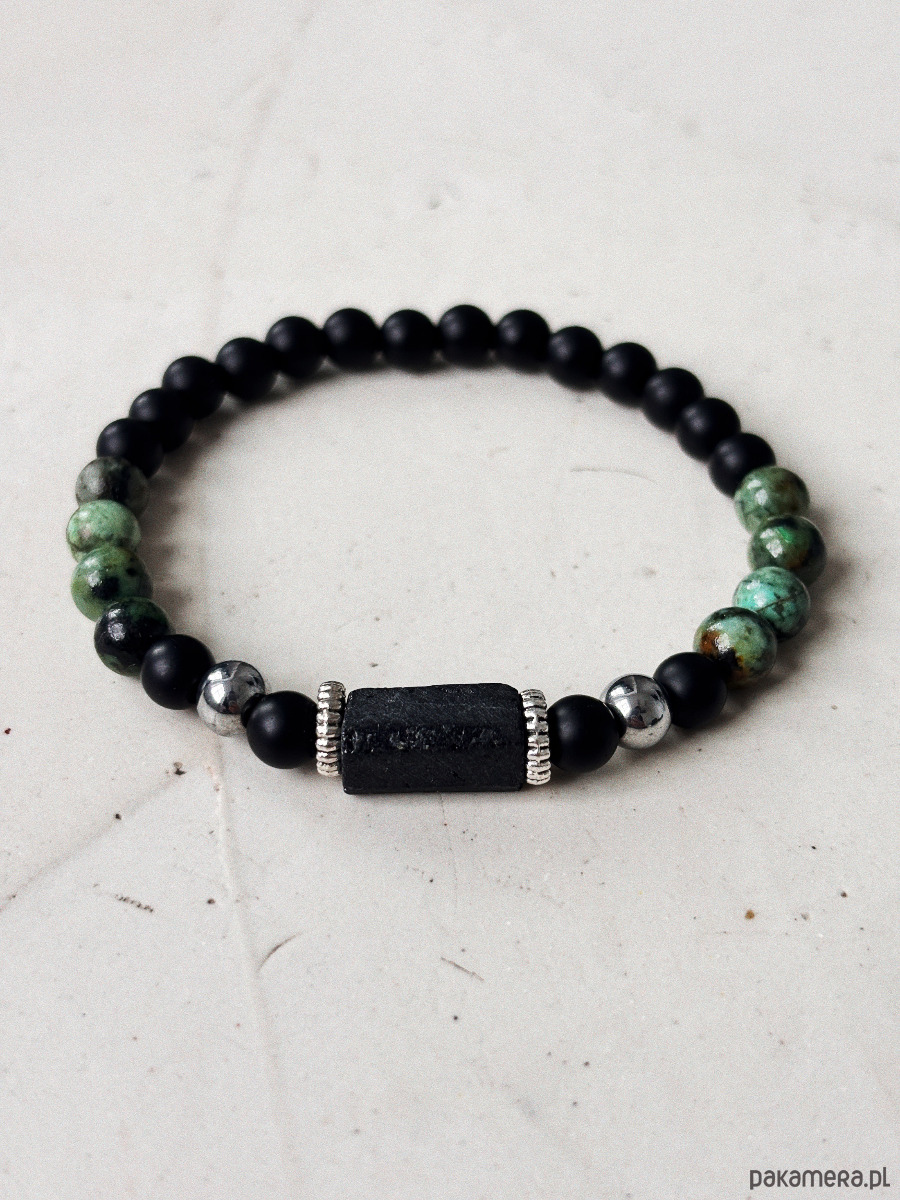 Bransoletka Męska Turkus afrykański i Turmalin