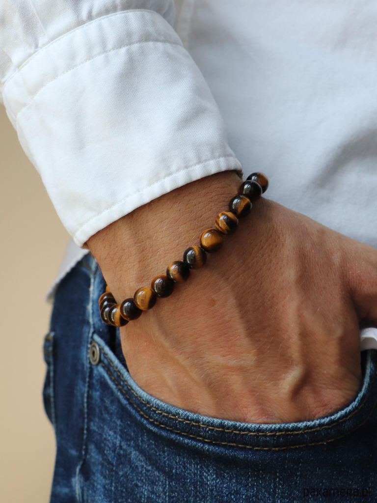 Bransoletka męska na żyłce elastycznej z kamieni naturalnych – Tygrysie OkoKamień: tygrysie oko
