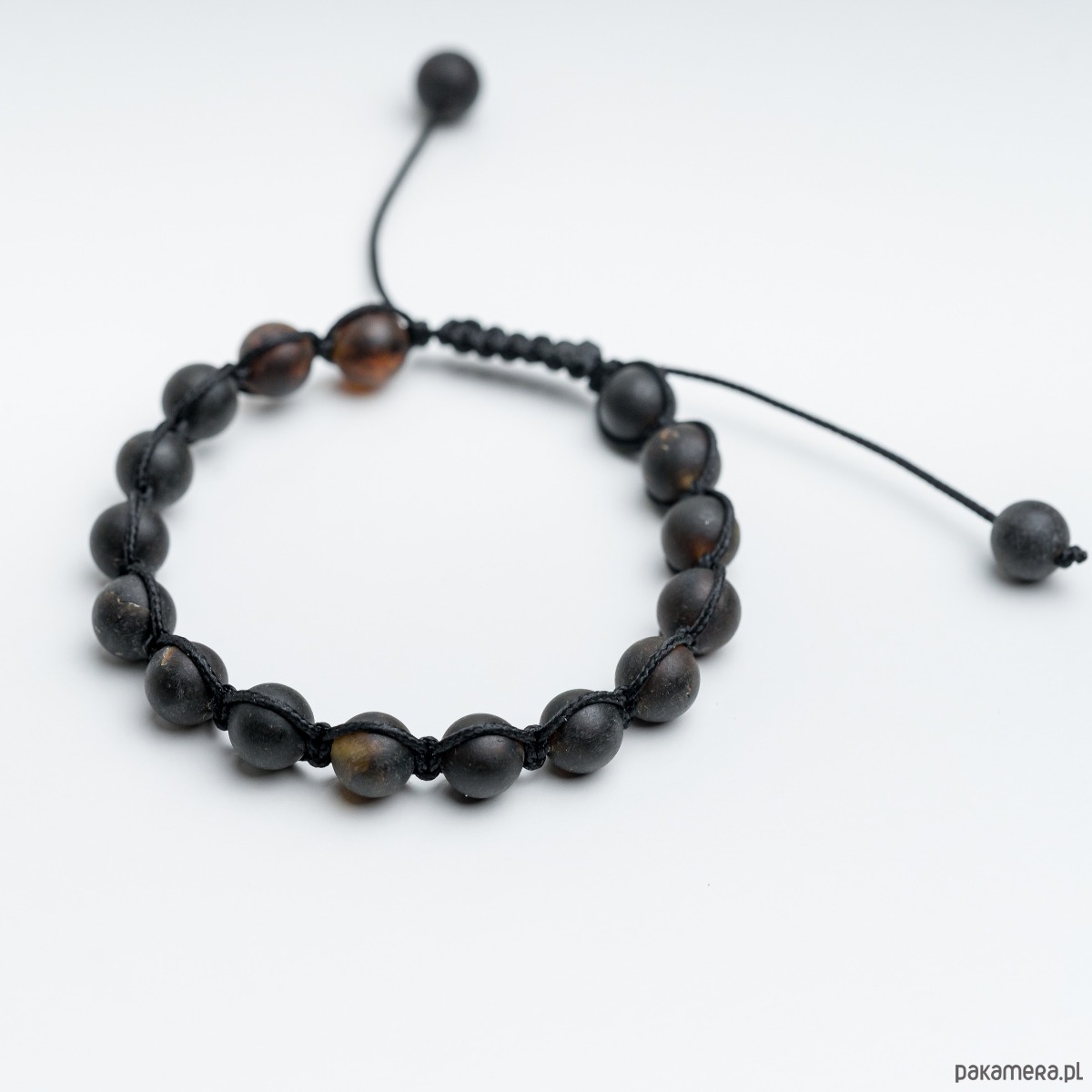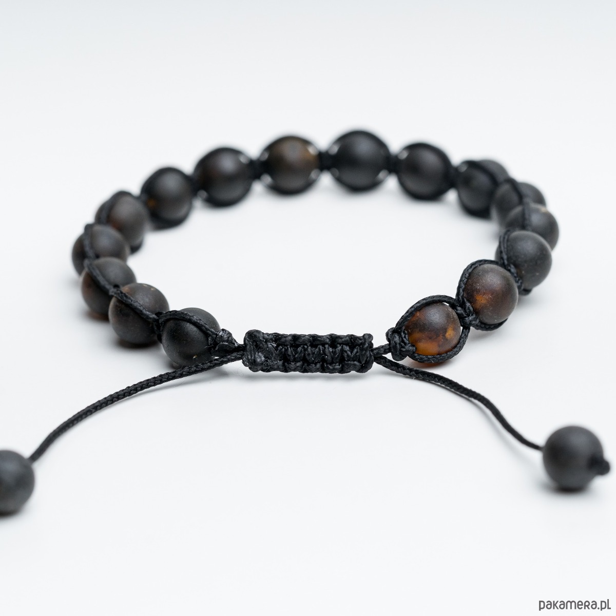 Bransoletka męska z czarnego/zielonego bursztynu bałtyckiego typu makrama