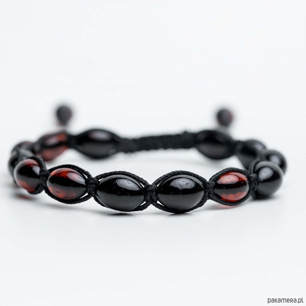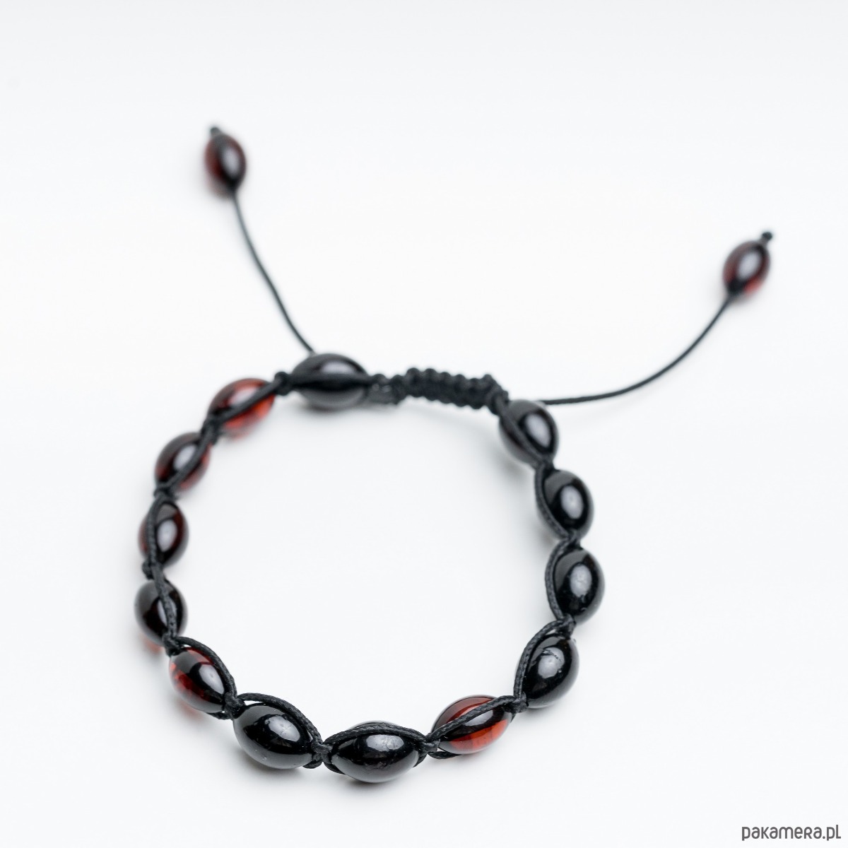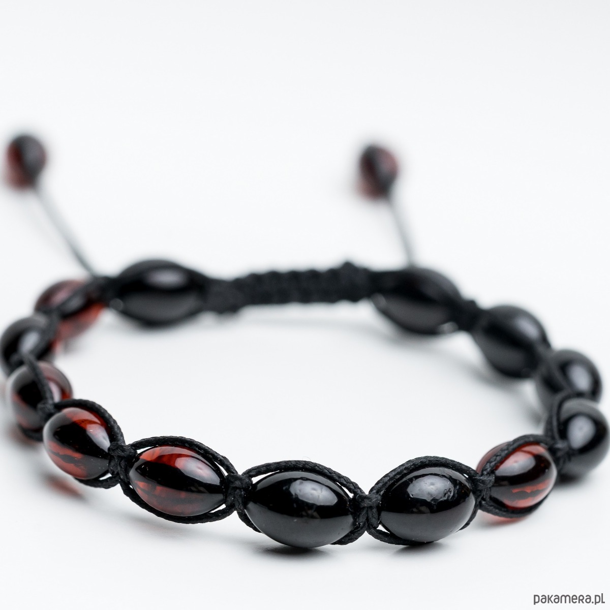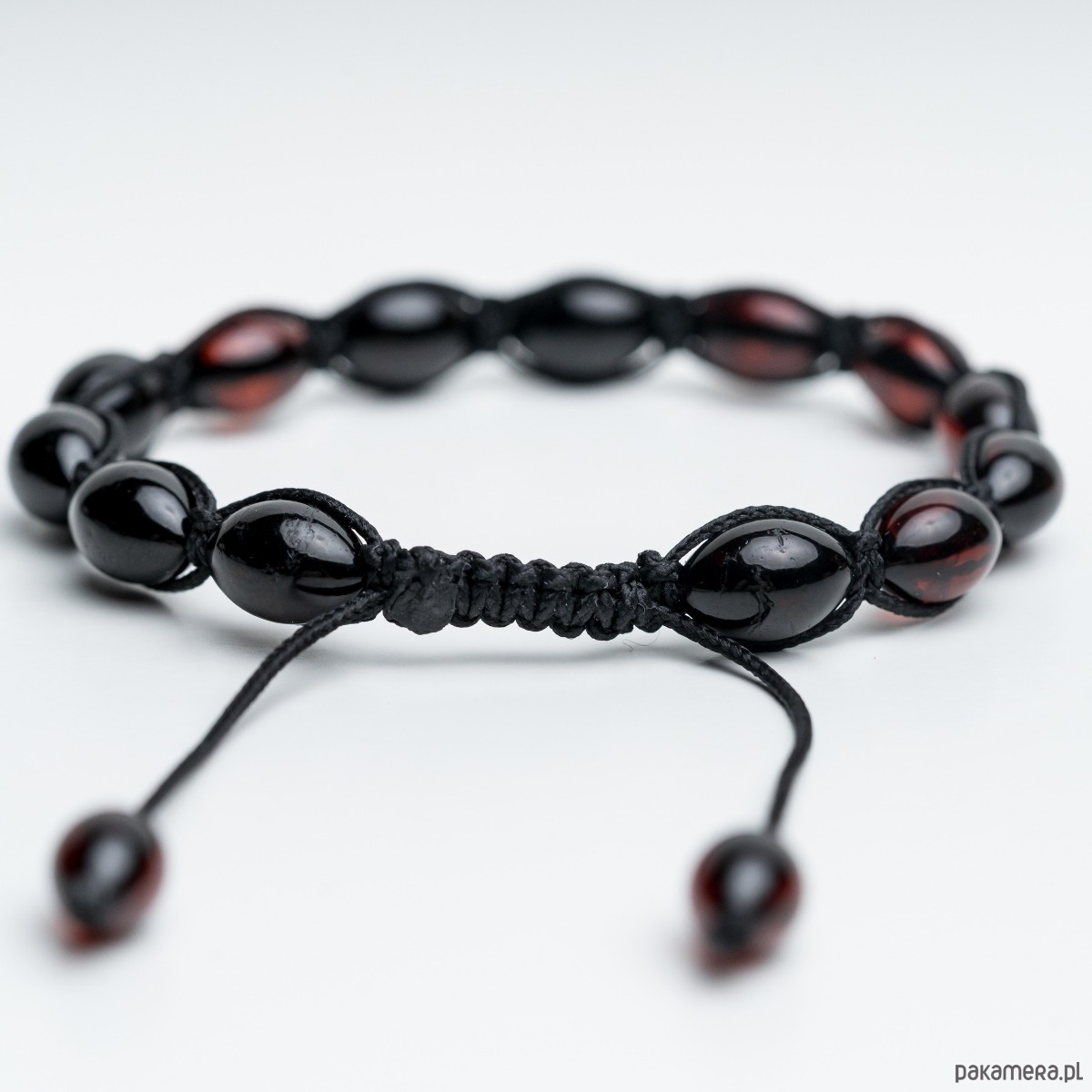 Bransoletka męska z wiśniowego bursztynu bałtyckiego typu makrama