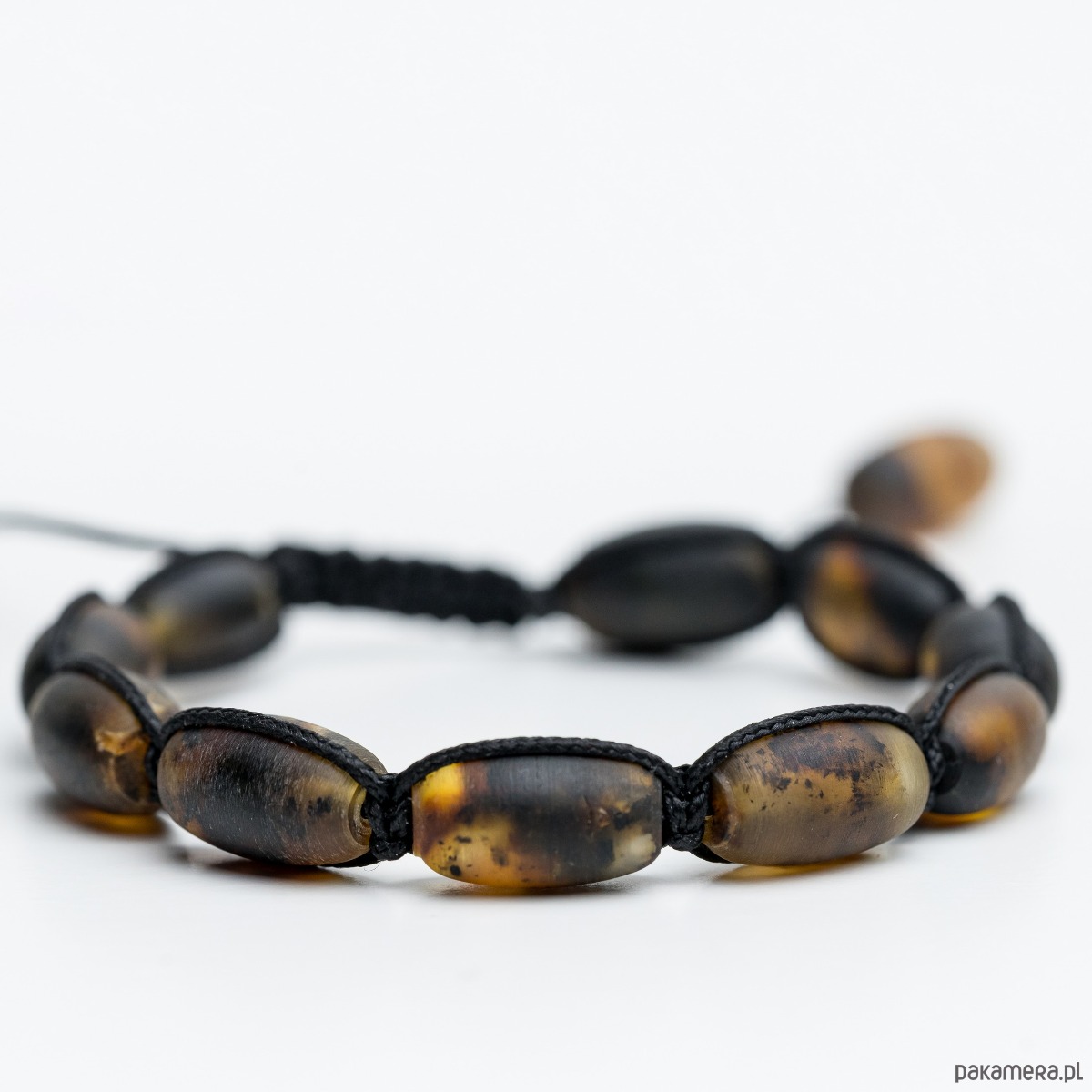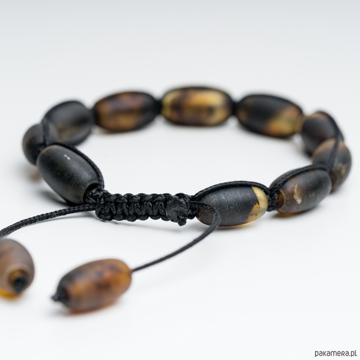 Bransoletka męska z czarnego/zielonego bursztynu bałtyckiego typu makrama