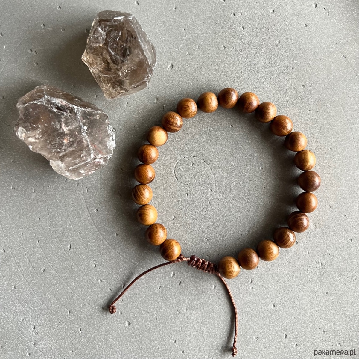 Bransoletka męska wykonana z jasnego drewna egzotycznego.