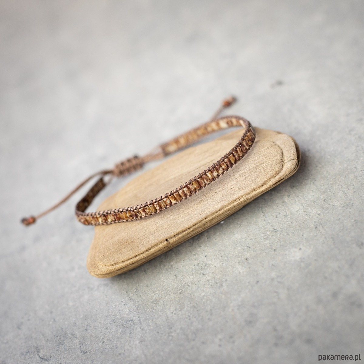 Szerokość: 0,6 cm, pasuje na nadgarstek 17-19 cm, zapięcie regulowane, makramowe.