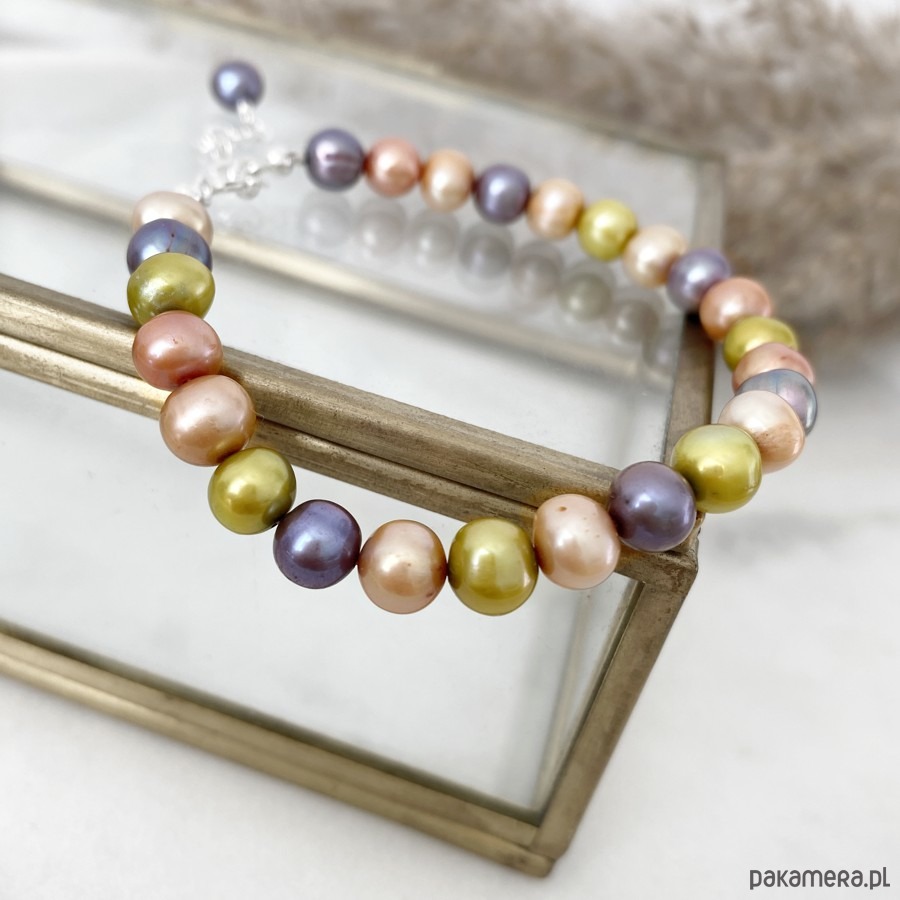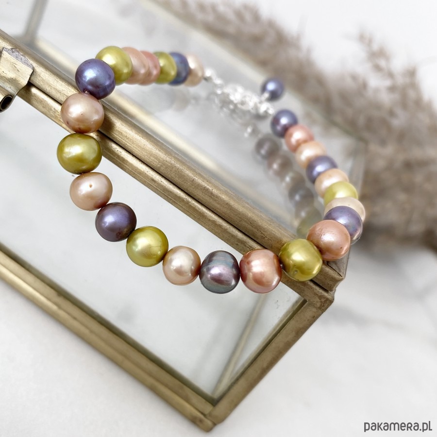 Efektowna bransoletka wykonana z naturalnych pereł hodowanych oraz srebra próby 925.